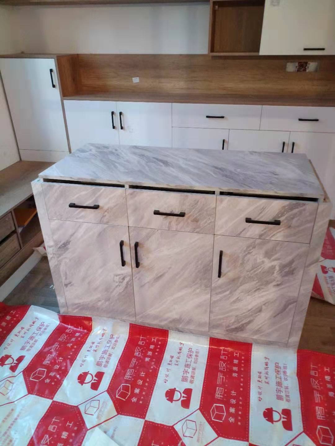 經(jīng)過(guò)兩天的努力,所有的柜子都安裝完成,還有一些小細(xì)節(jié)到時(shí)候收尾一起解決,不得不說(shuō)小姐姐的眼光不錯(cuò),島臺(tái)和餐邊柜顏值在線,選的顏色做出來(lái)的效果都美美噠,等畢業(yè)了在拍一波美膩的照片。
