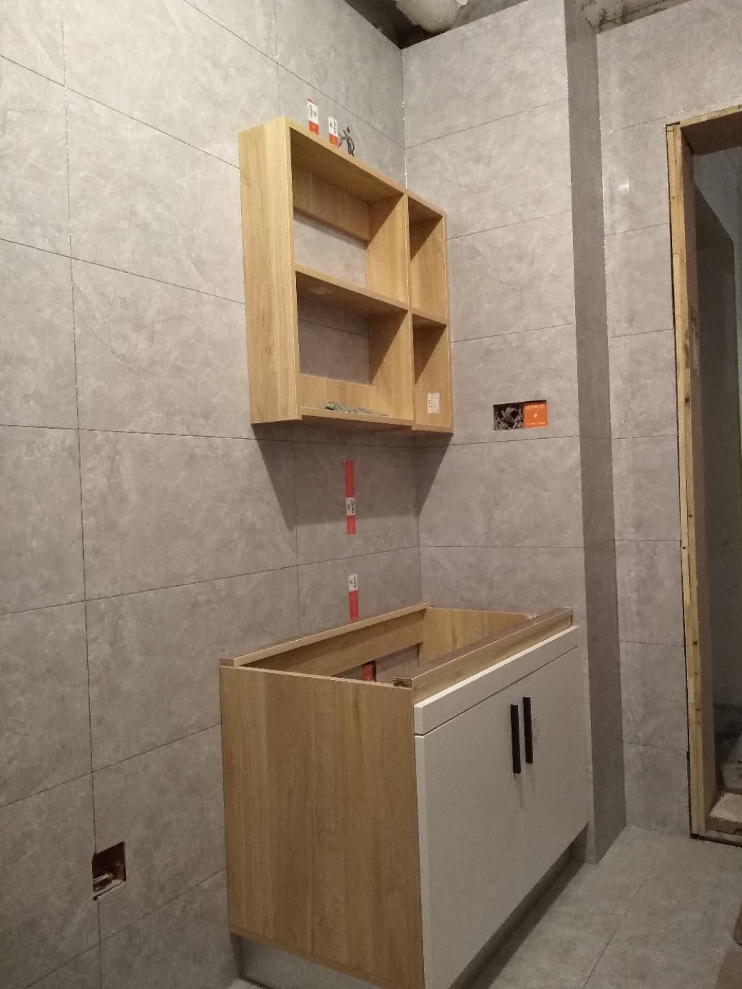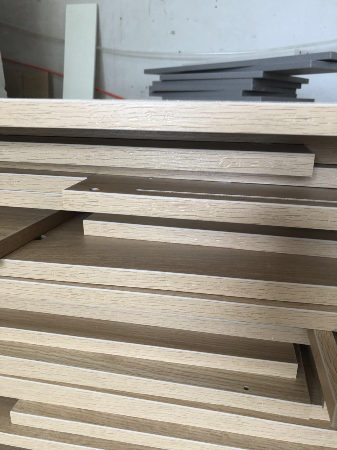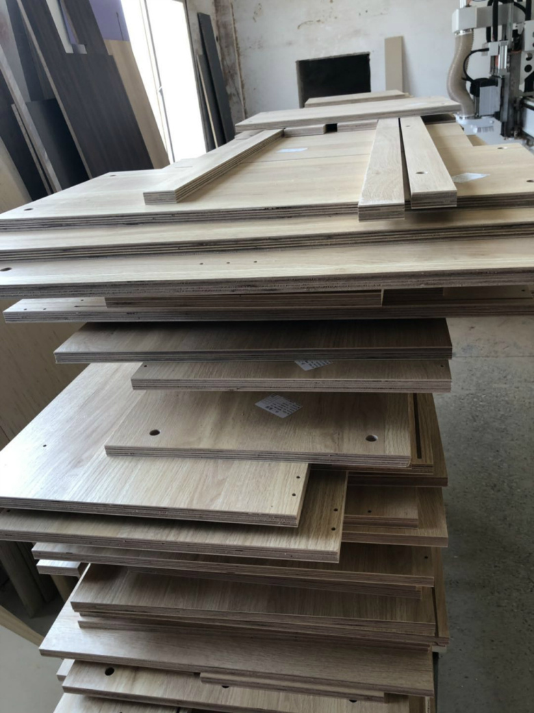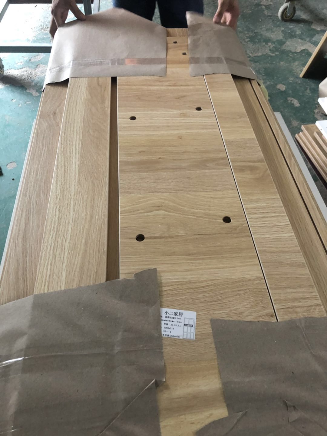 開始制作了,柜體板材使用平安樹實木多層清水橡木E0級制作,真材實料,有高級的藍光防偽標識哦。