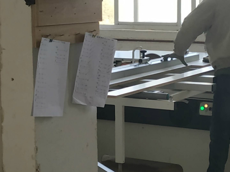櫥柜板材裁板中,使用機(jī)器精確裁板,衣柜板材已經(jīng)裁好板了,待封邊,封邊使用專門的機(jī)器封邊哦,板材使用平安樹暖白色實(shí)木多層板制作,上面有平安樹高級藍(lán)光防偽標(biāo)記。