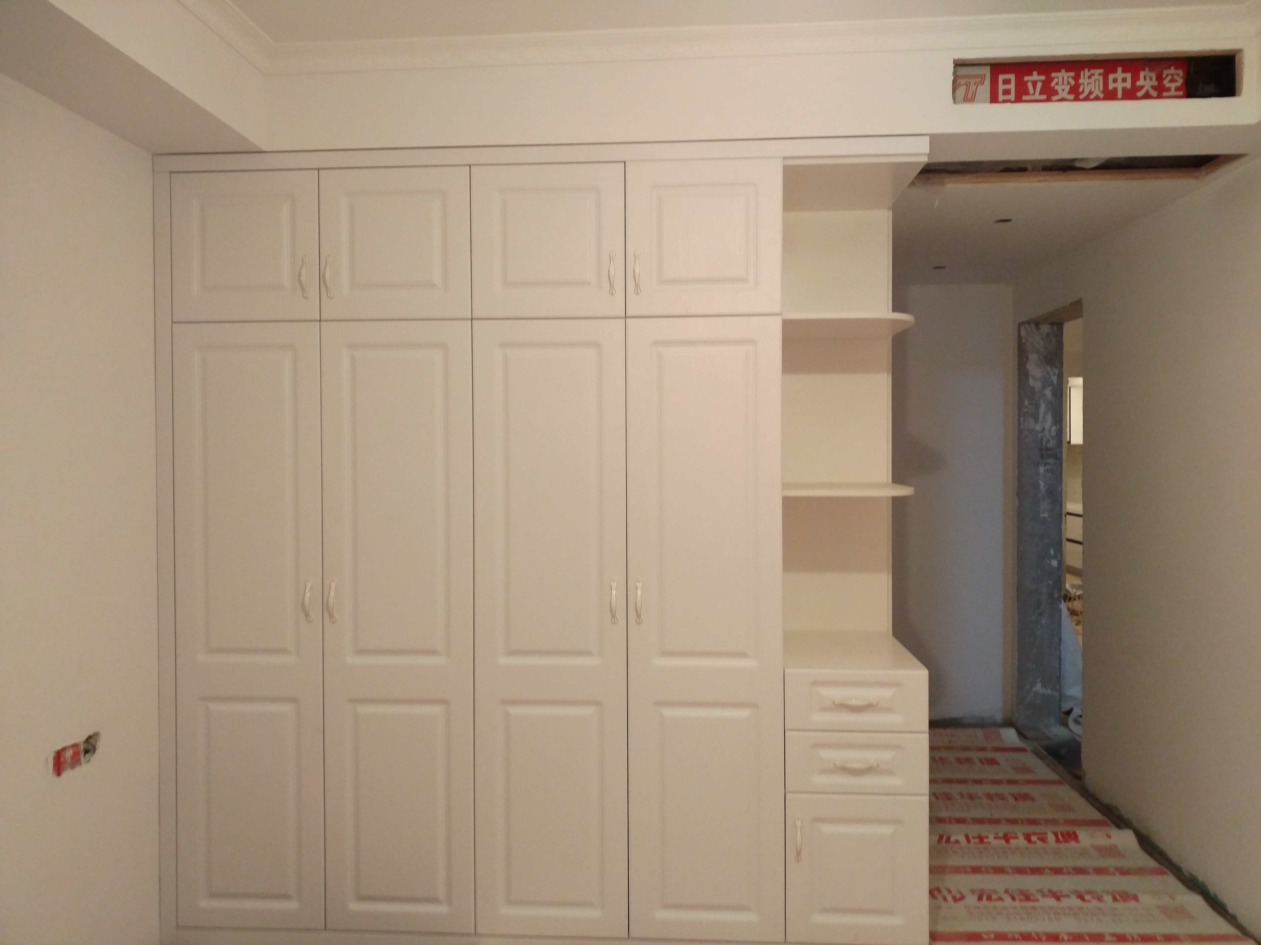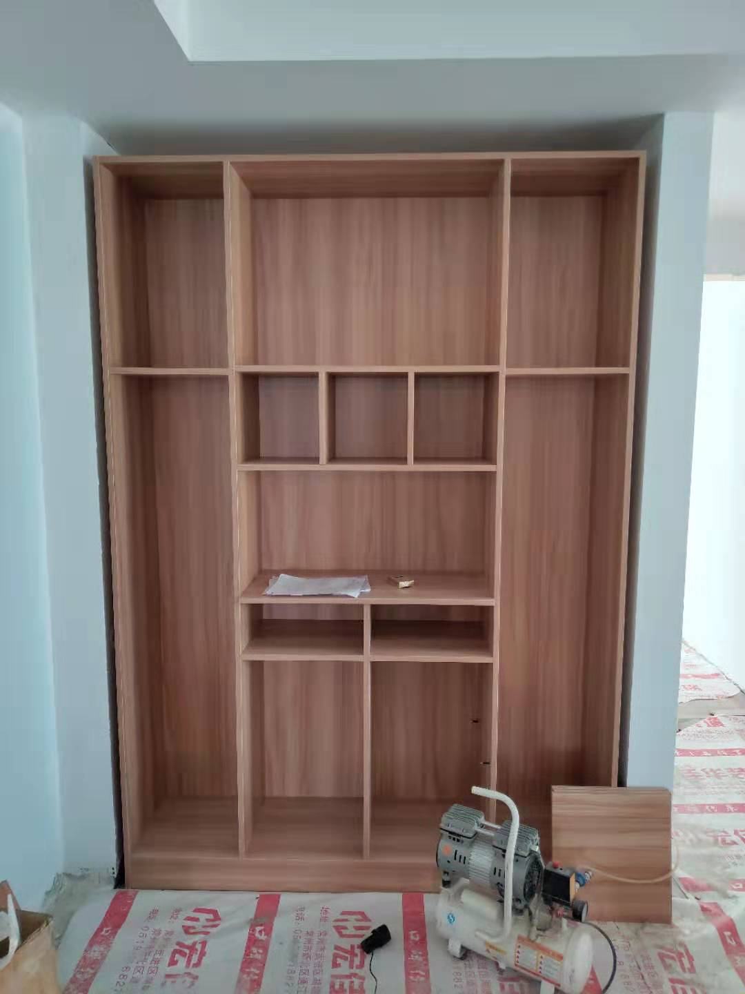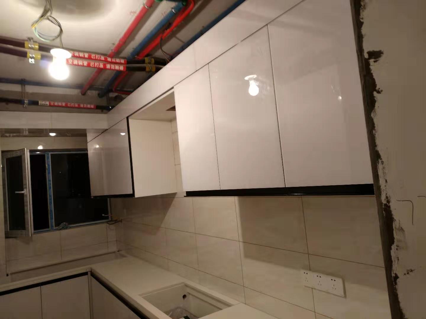 開始安裝啦,師傅們都很認(rèn)真,柜體都安裝好了。