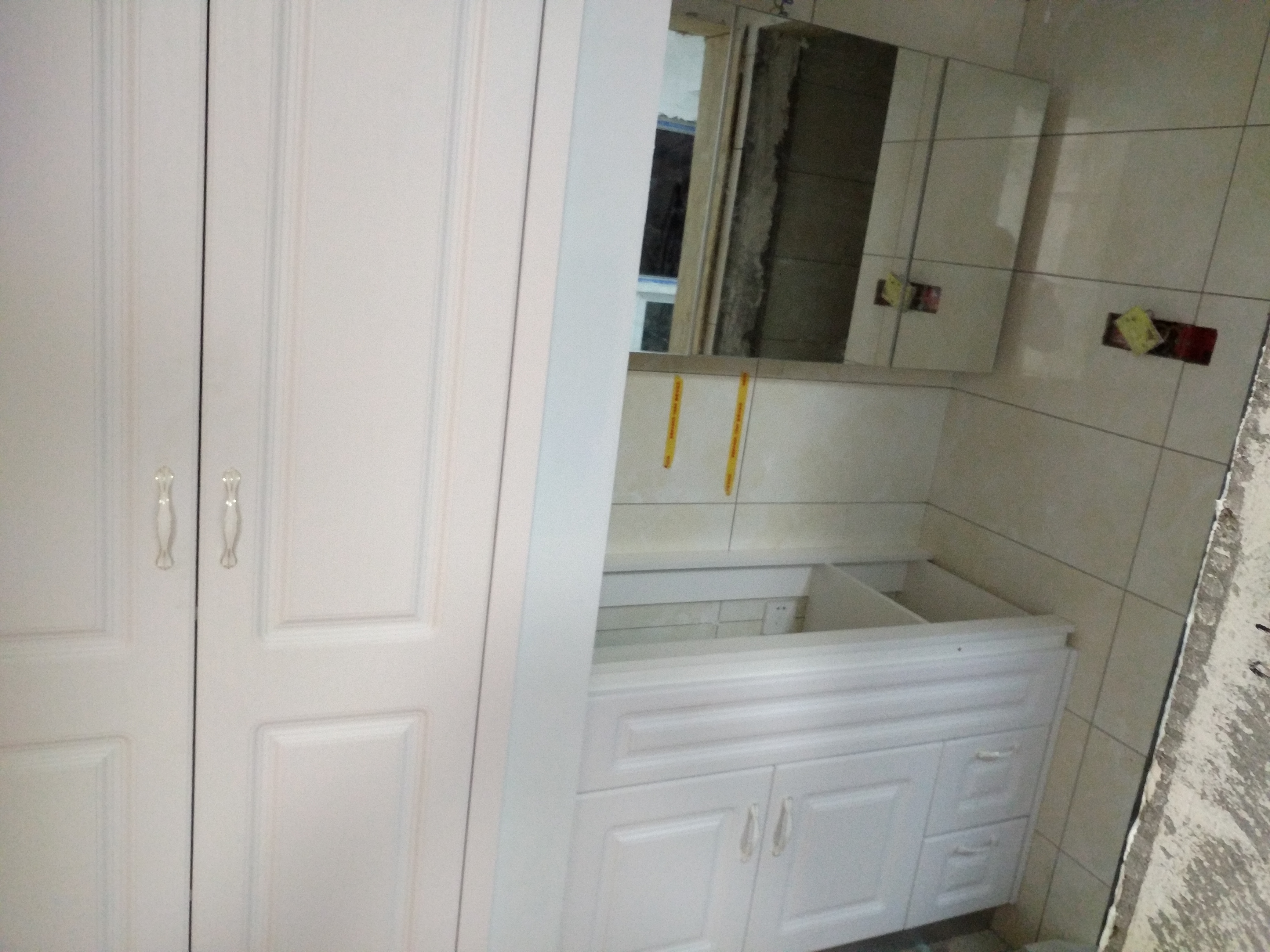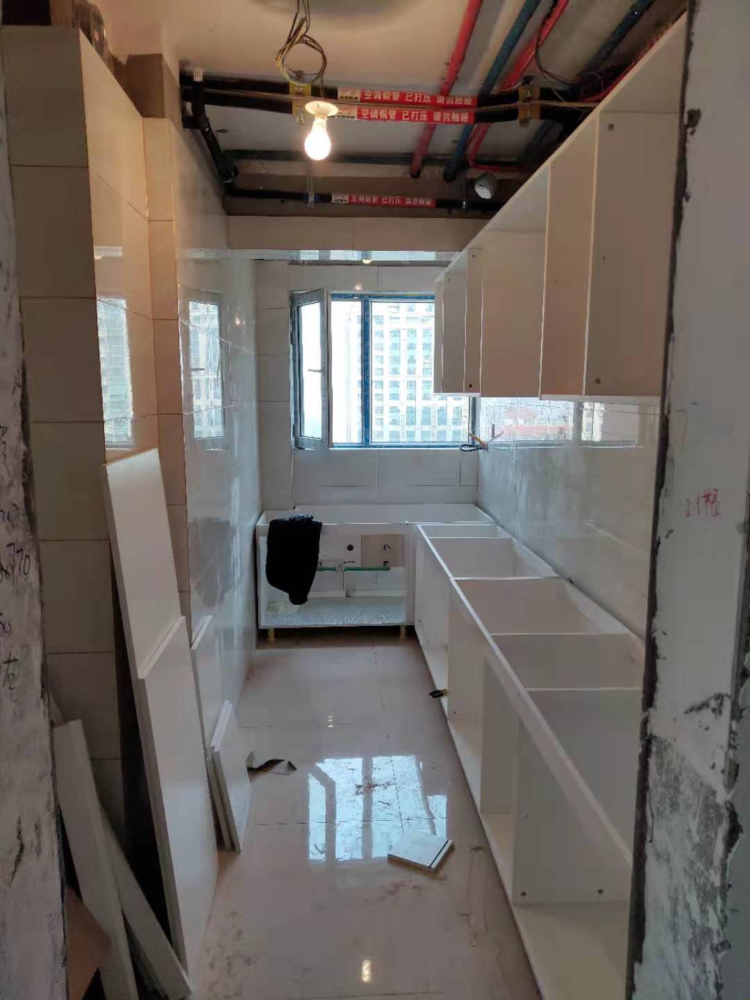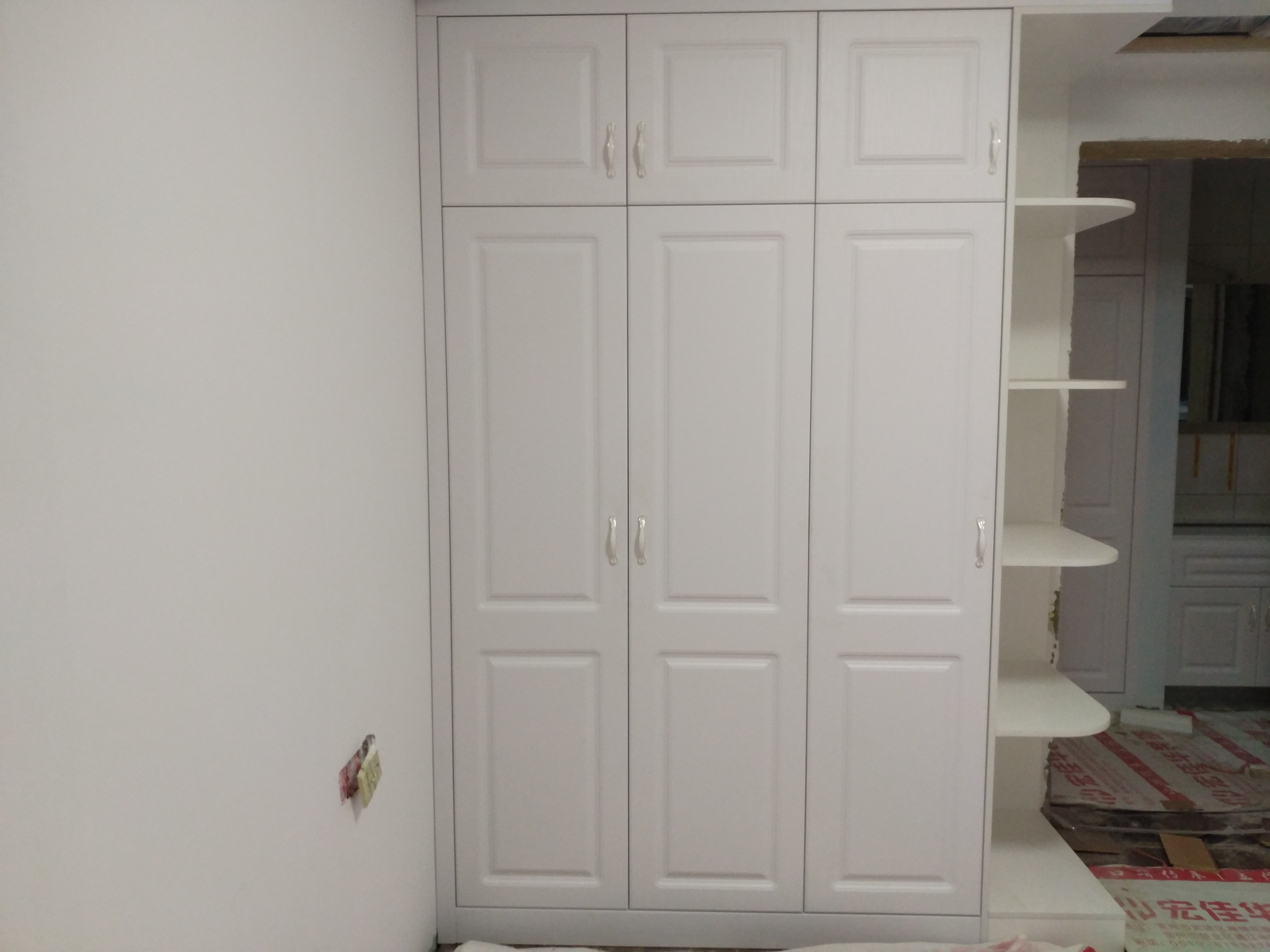 開始安裝啦,師傅們都很認(rèn)真,柜體都安裝好了。