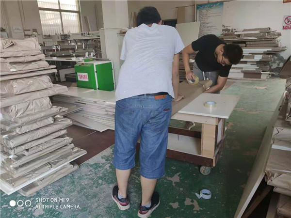 臥室衣柜封邊走起,等封邊結(jié)束就開始打孔包裝了,這樣早早就能送貨單客戶家了