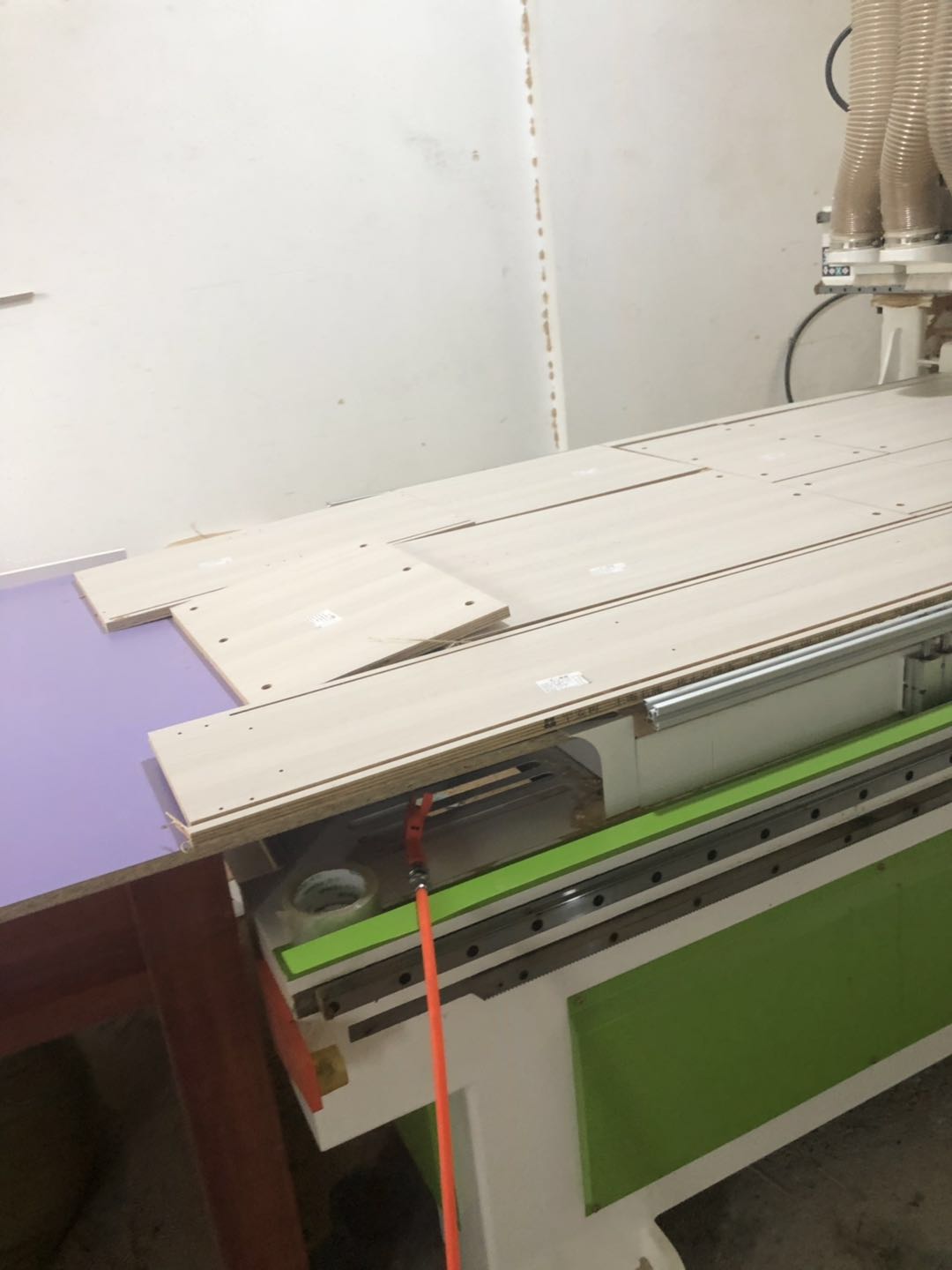 開始制作了,衣柜裁板打孔中,專業(yè)設備沒有爆邊,板材使用平安樹實木多層銀沙榆制作,有高級的藍光防偽標識哦