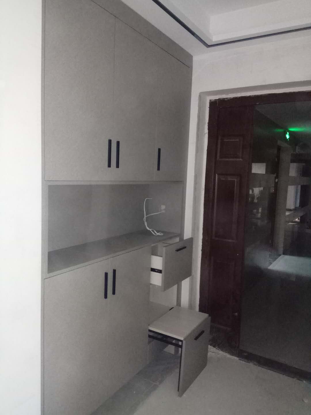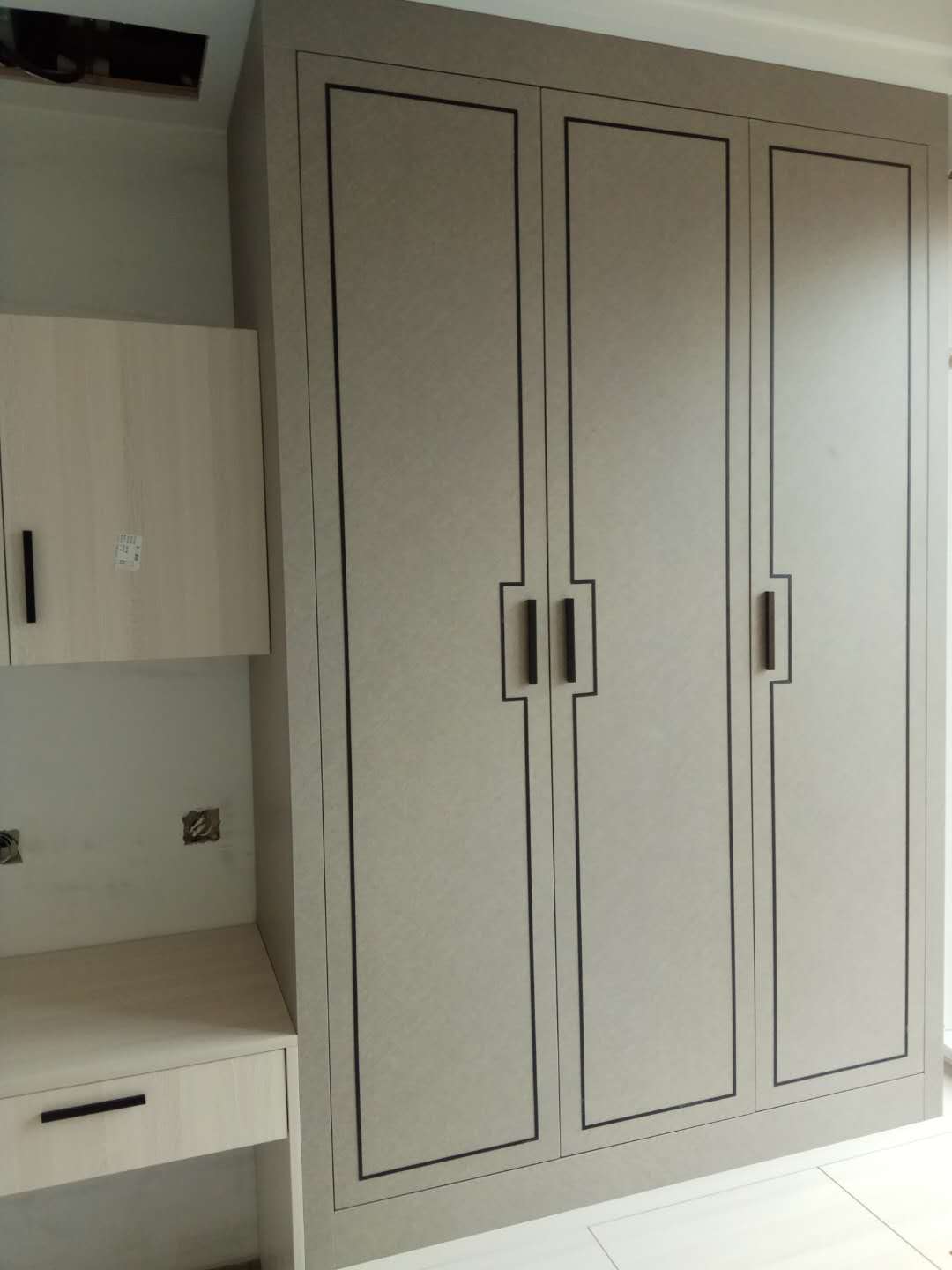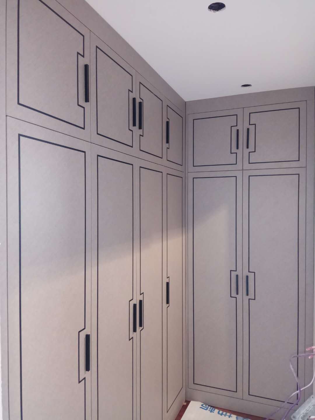 還在安裝中,業(yè)主大大家的柜子比較多,還要一點時間的,慢工出細活,師傅們比較細心,辛苦了。等柜門都裝好在來一波美圖。