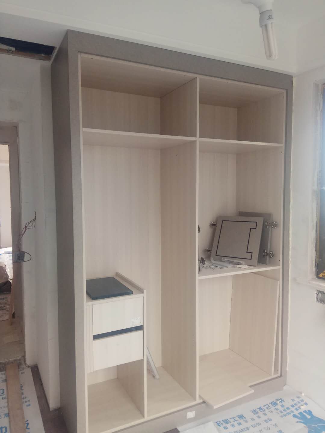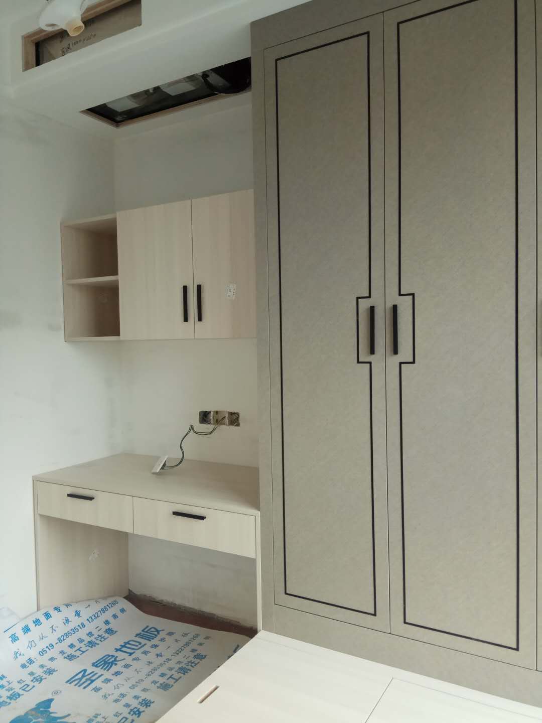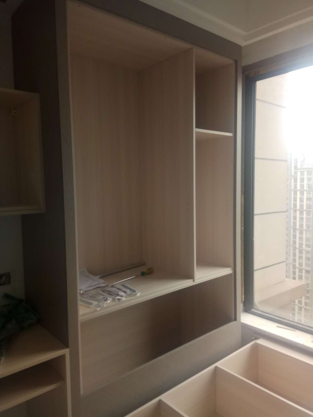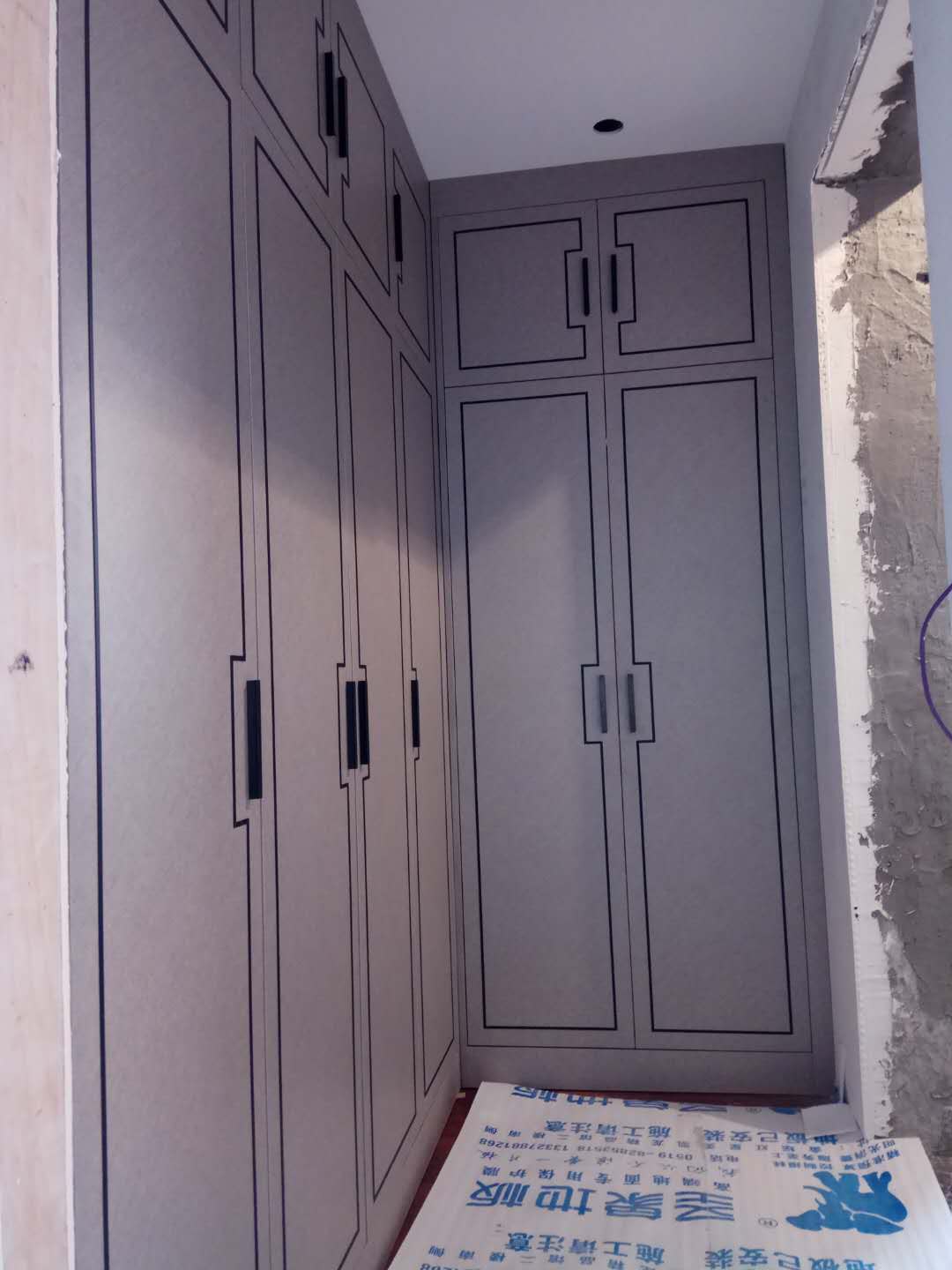 還在安裝中,業(yè)主大大家的柜子比較多,還要一點時間的,慢工出細活,師傅們比較細心,辛苦了。等柜門都裝好在來一波美圖。