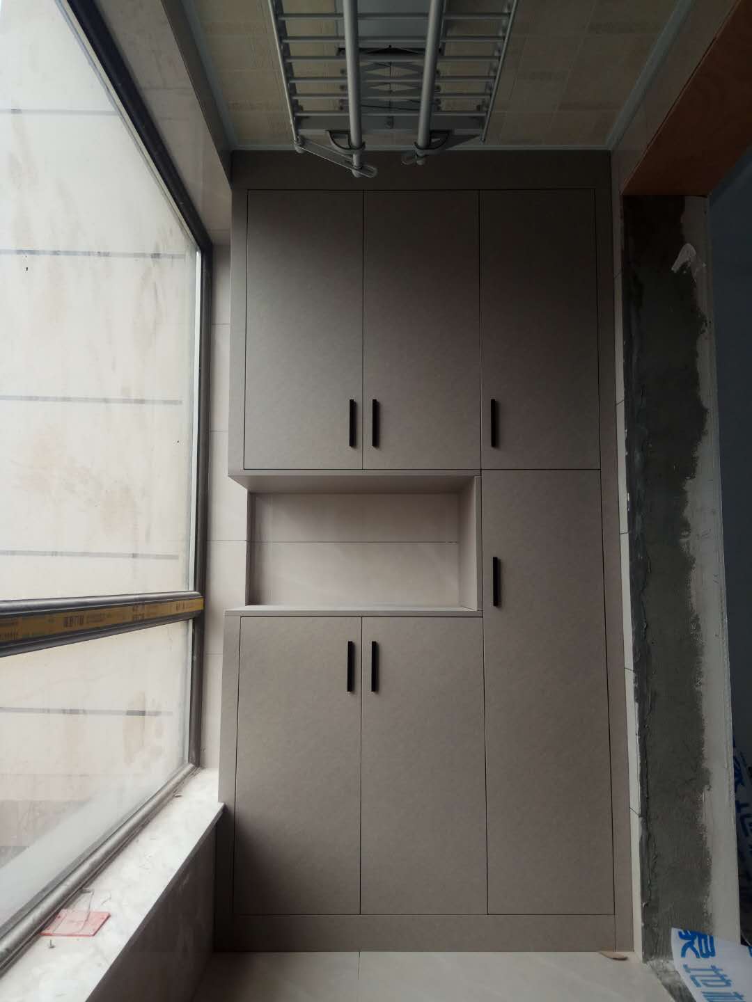 所有的柜子都裝好了,灰色門板加上黑色線條整體效果是不是很贊。