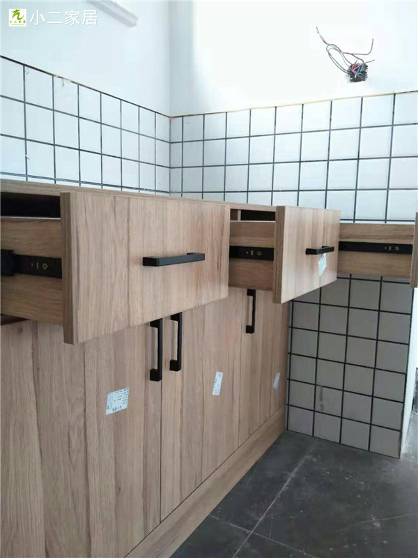 經(jīng)過師傅們幾天的努力,柜子的整體效果出來了,原木色配白色金典搭配。天氣炎熱,師傅們記得多喝點水,注意防暑哦!