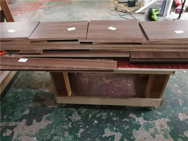 開始制作啦!柜體裁板中,板材使用平安樹實木多層板,有高級的藍光防偽標識哦
