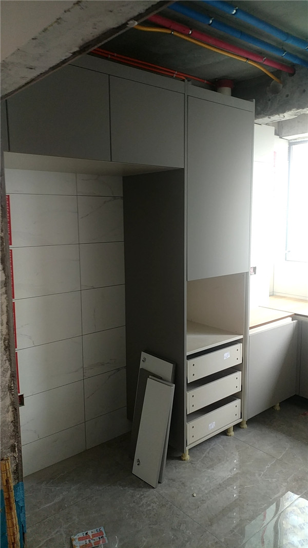 師傅一個人安裝還是蠻辛苦的,所以時間有點久,柜體基本拼裝完畢了,客戶家收納空間蠻大的,后期不用愁啦!師傅說就快整體結(jié)束了,期待最后的效果吧!