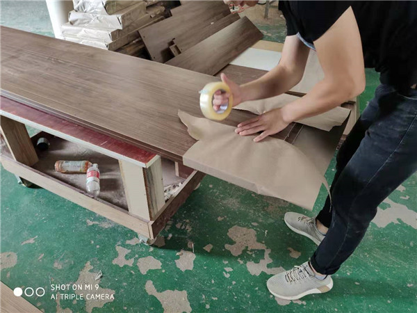 開始封邊咯!封邊采用法國波士熱熔顆粒膠,設(shè)備溫度高達(dá)190℃-200°C,這樣封出來的邊才不容易爆口。