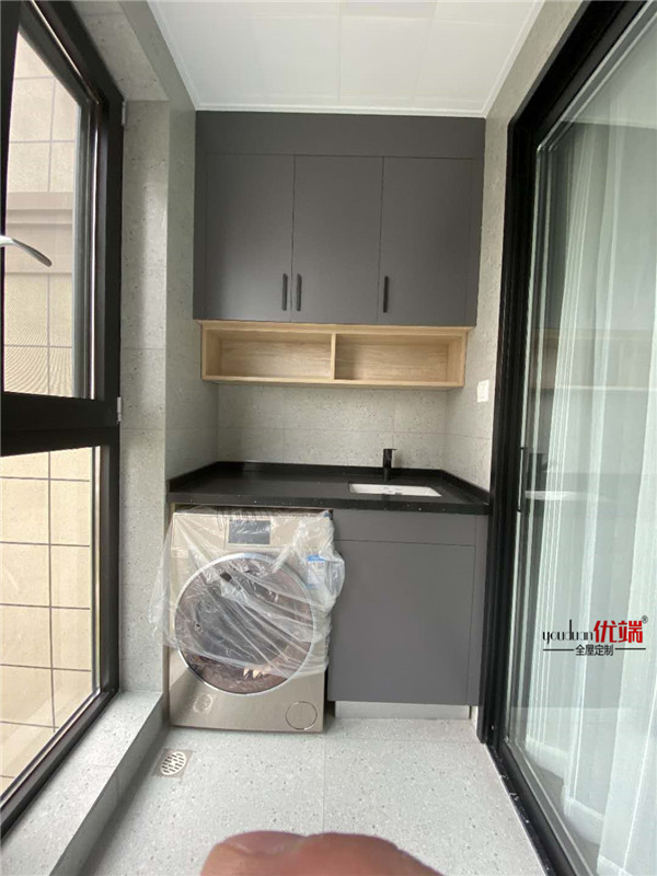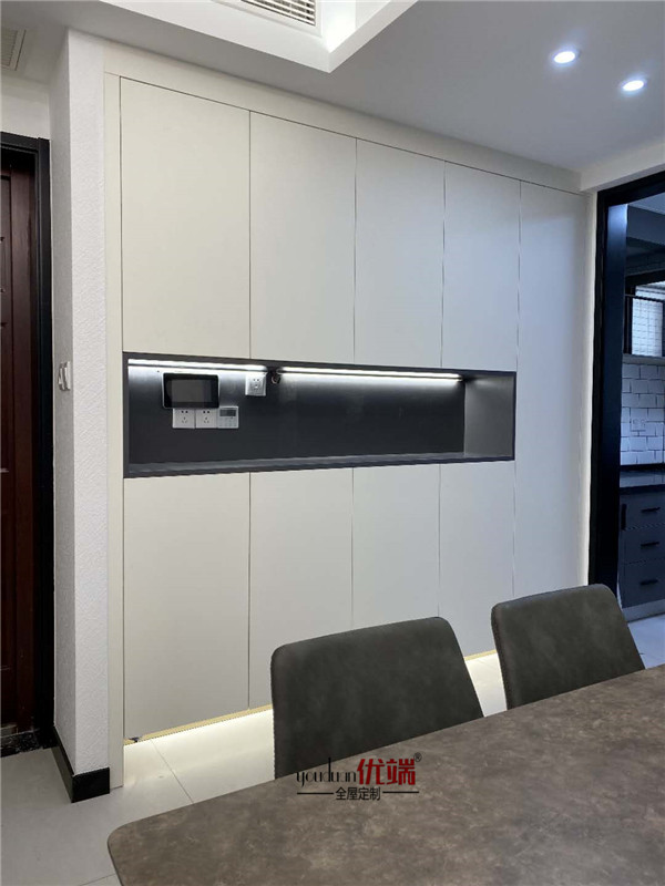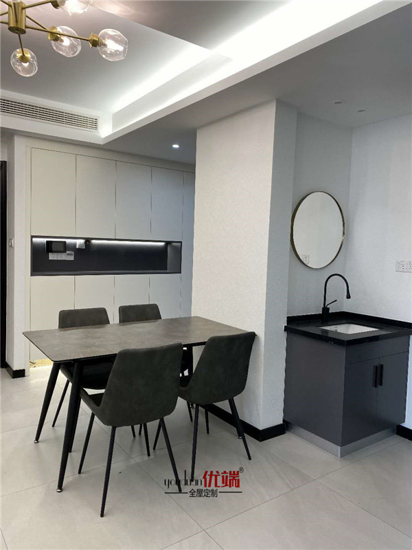 師傅安裝告一段落,大家看看安裝效果吧!灰玻柜門顏值很高啊,整體都是很干凈利落的設計。