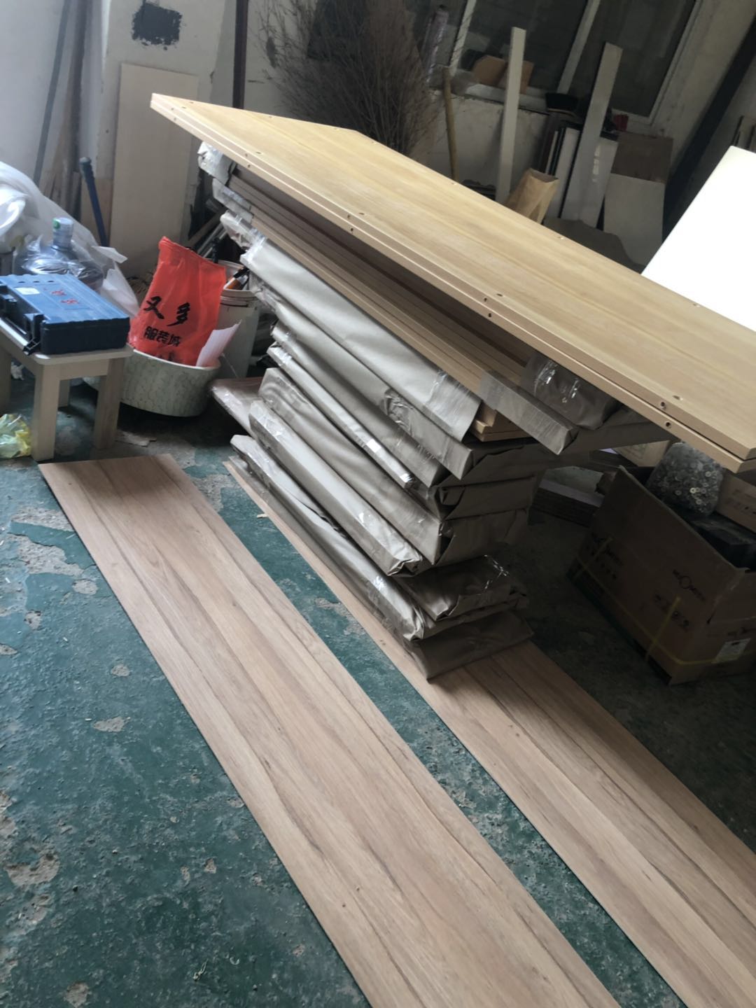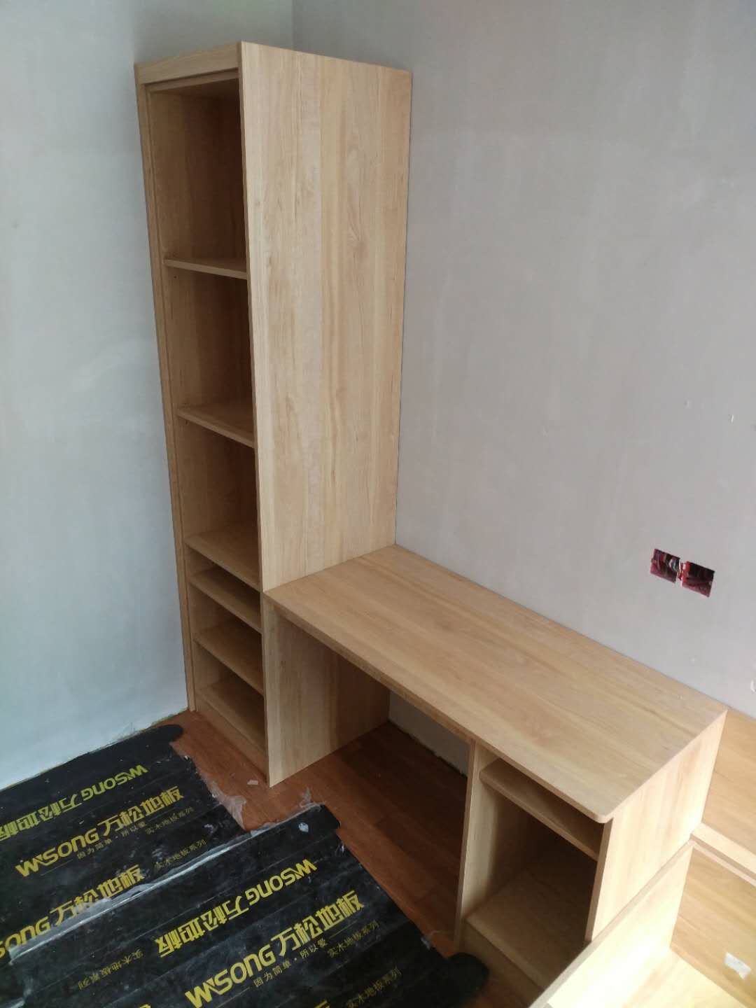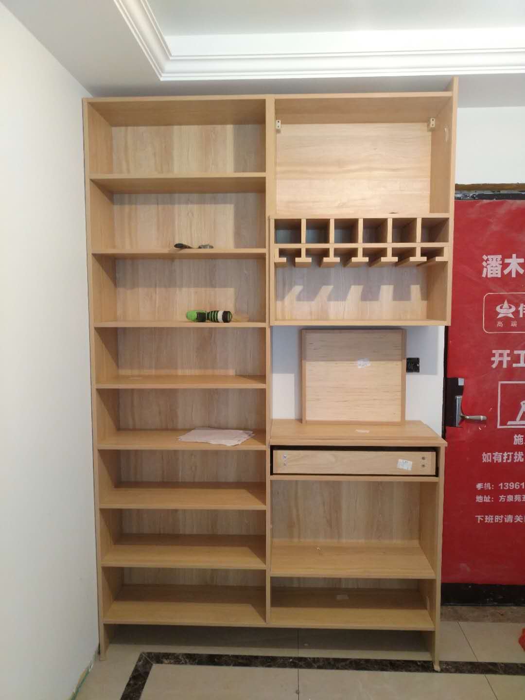 安裝中,不得不說師傅還是蠻給力的,原木色柜體已經(jīng)拼裝的差不多了,等柜門裝好在上一波整體效果。