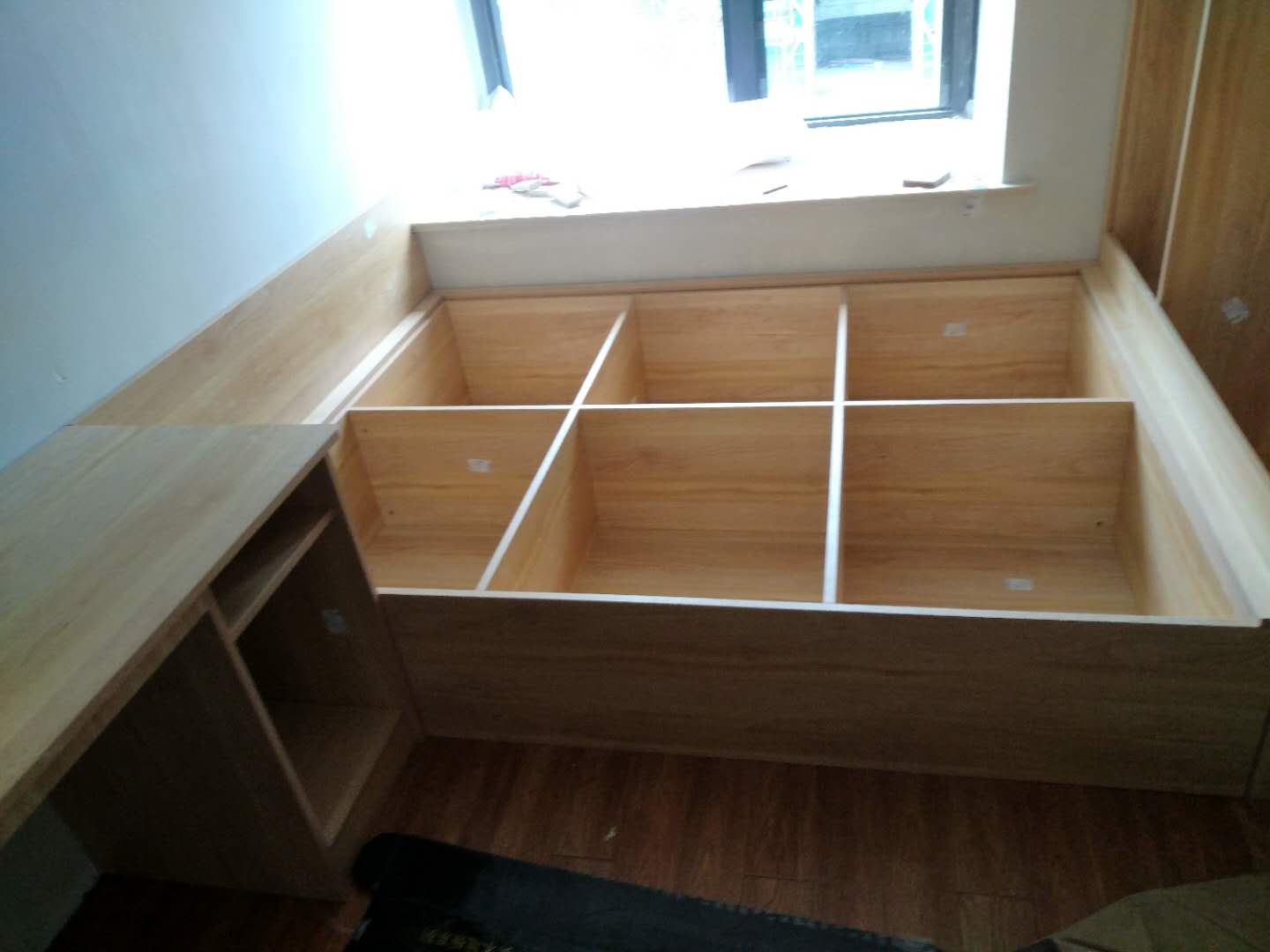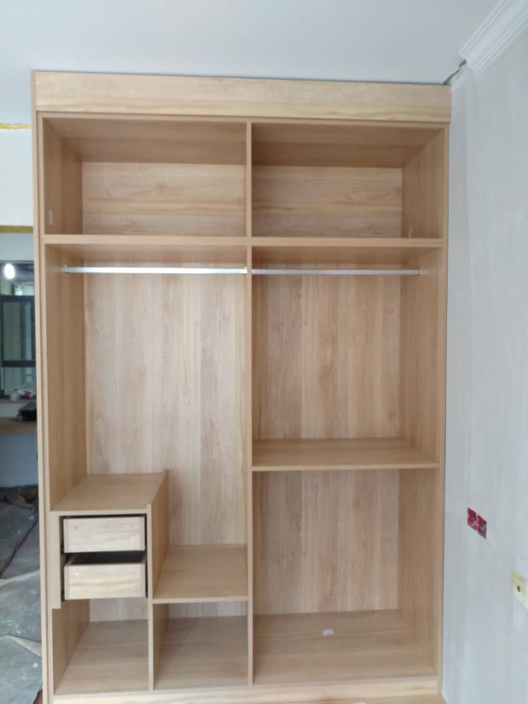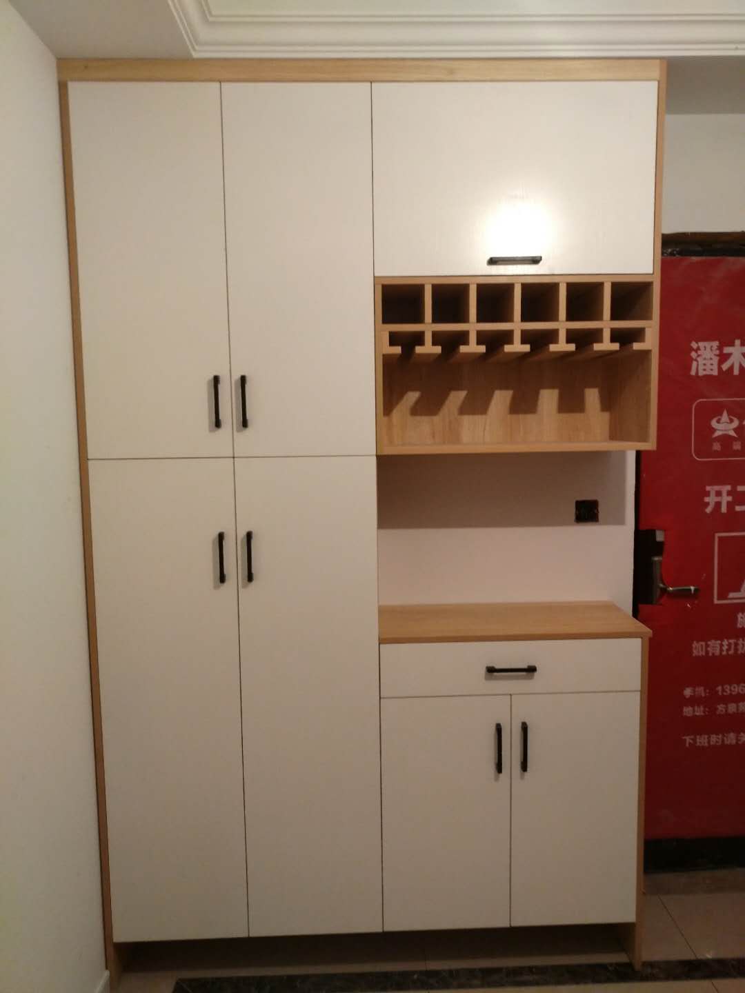 安裝中,不得不說師傅還是蠻給力的,原木色柜體已經(jīng)拼裝的差不多了,等柜門裝好在上一波整體效果。