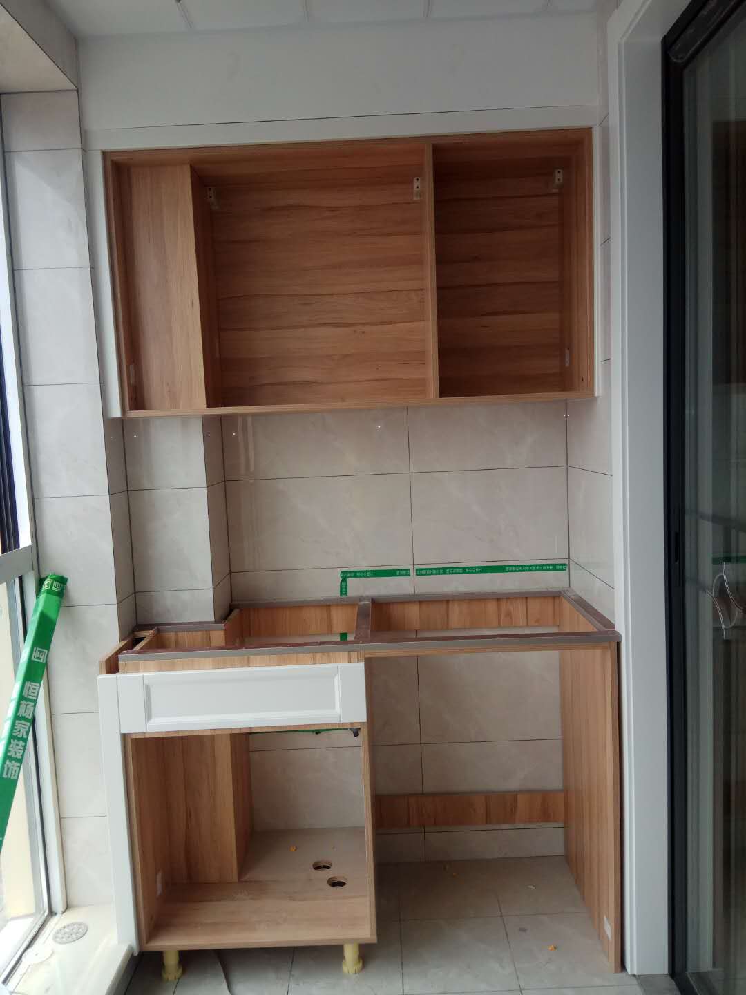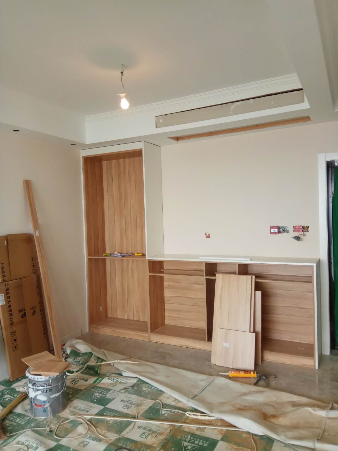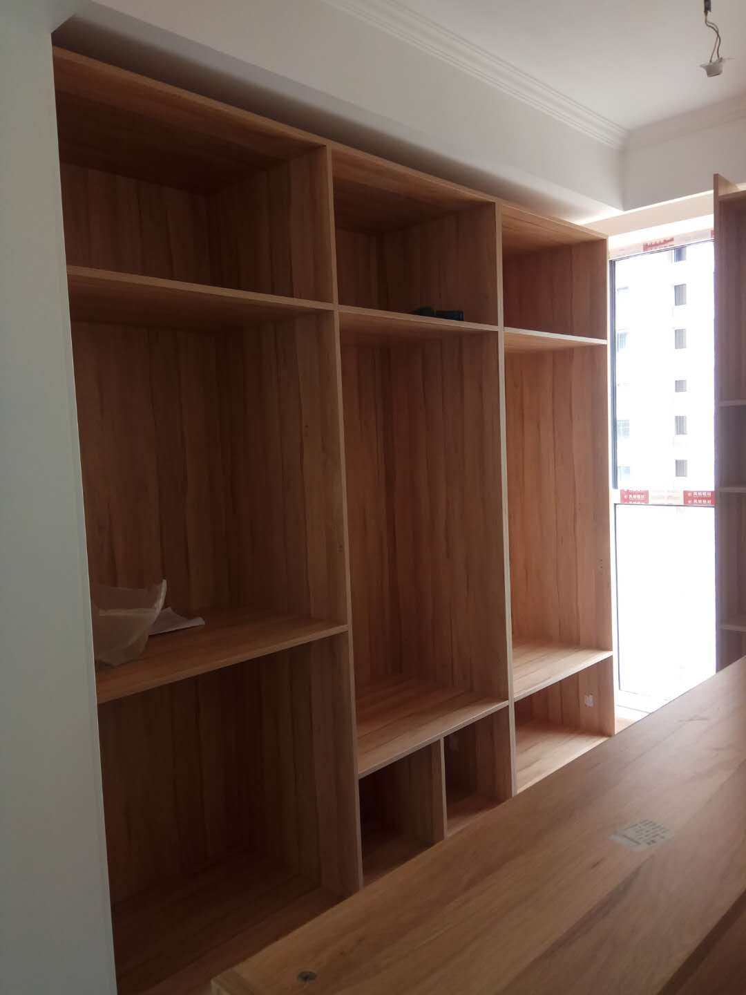安裝中,柜體板已經(jīng)拼裝完工了,還差門板,大概明天就裝好了,一起期待終成果吧。