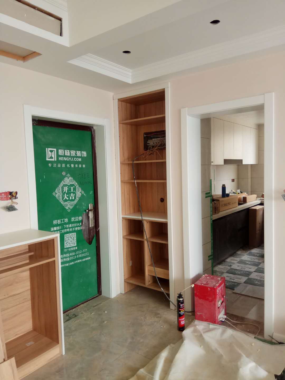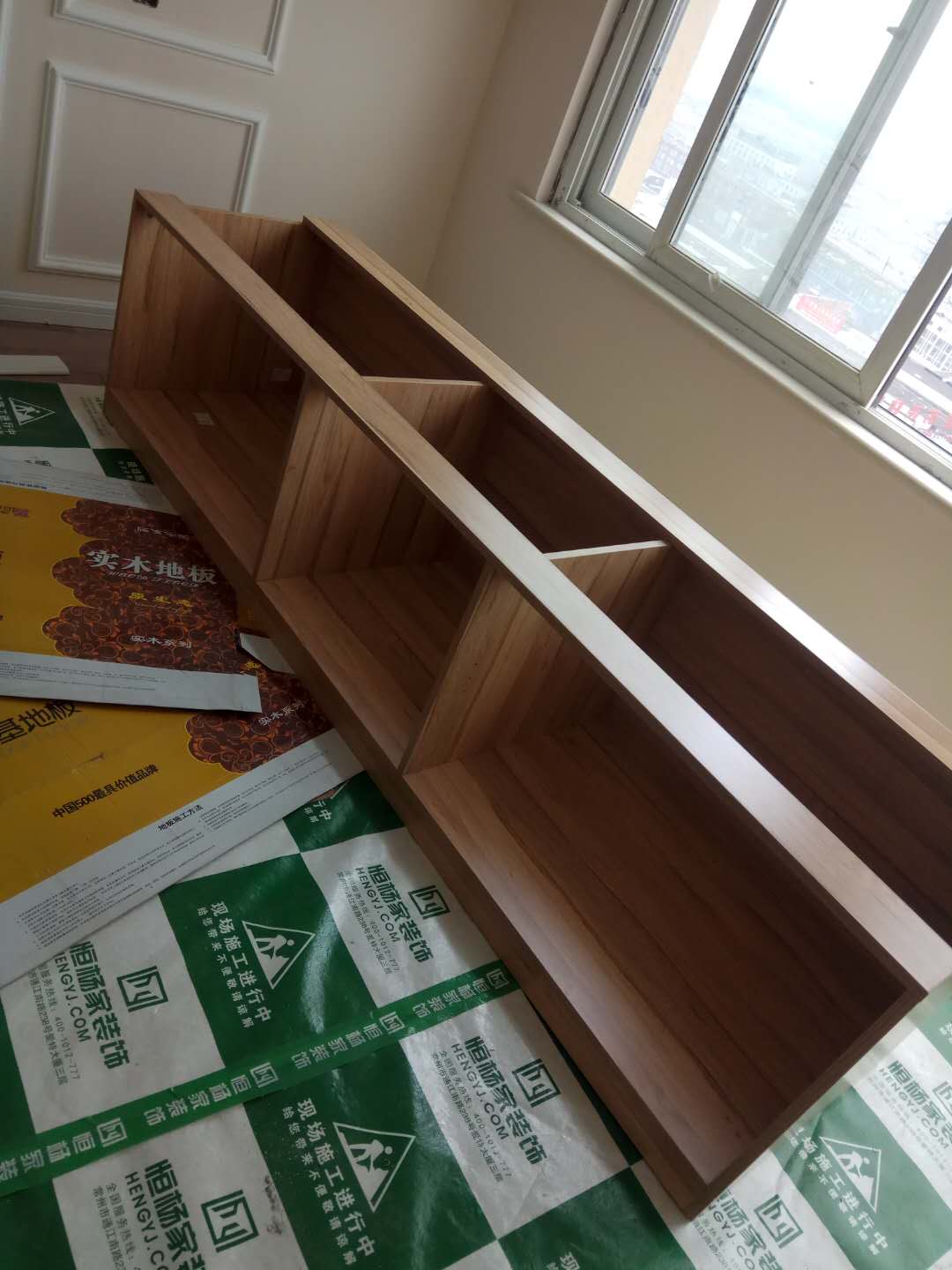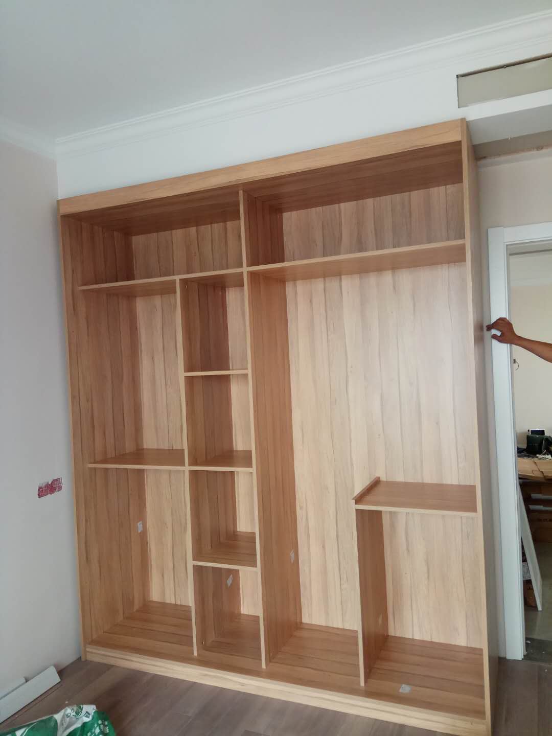 安裝中,柜體板已經(jīng)拼裝完工了,還差門板,大概明天就裝好了,一起期待終成果吧。