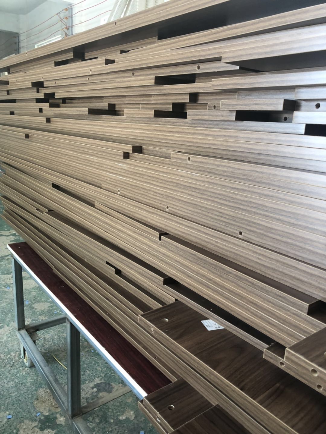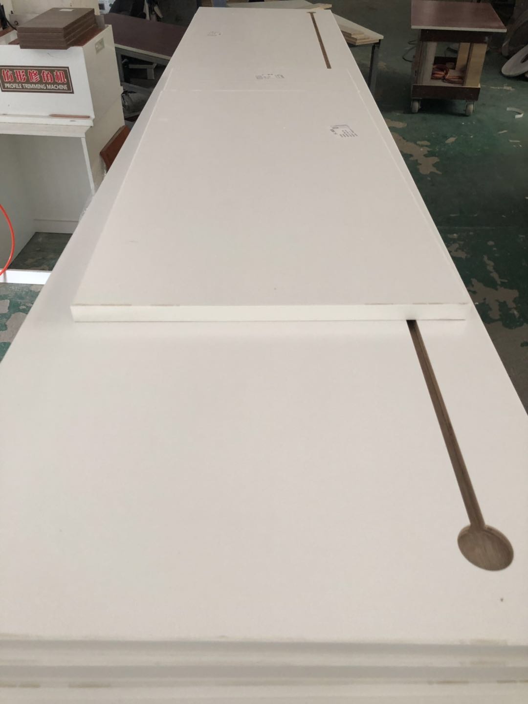 柜體封完邊了,側(cè)邊還需打孔,待打包