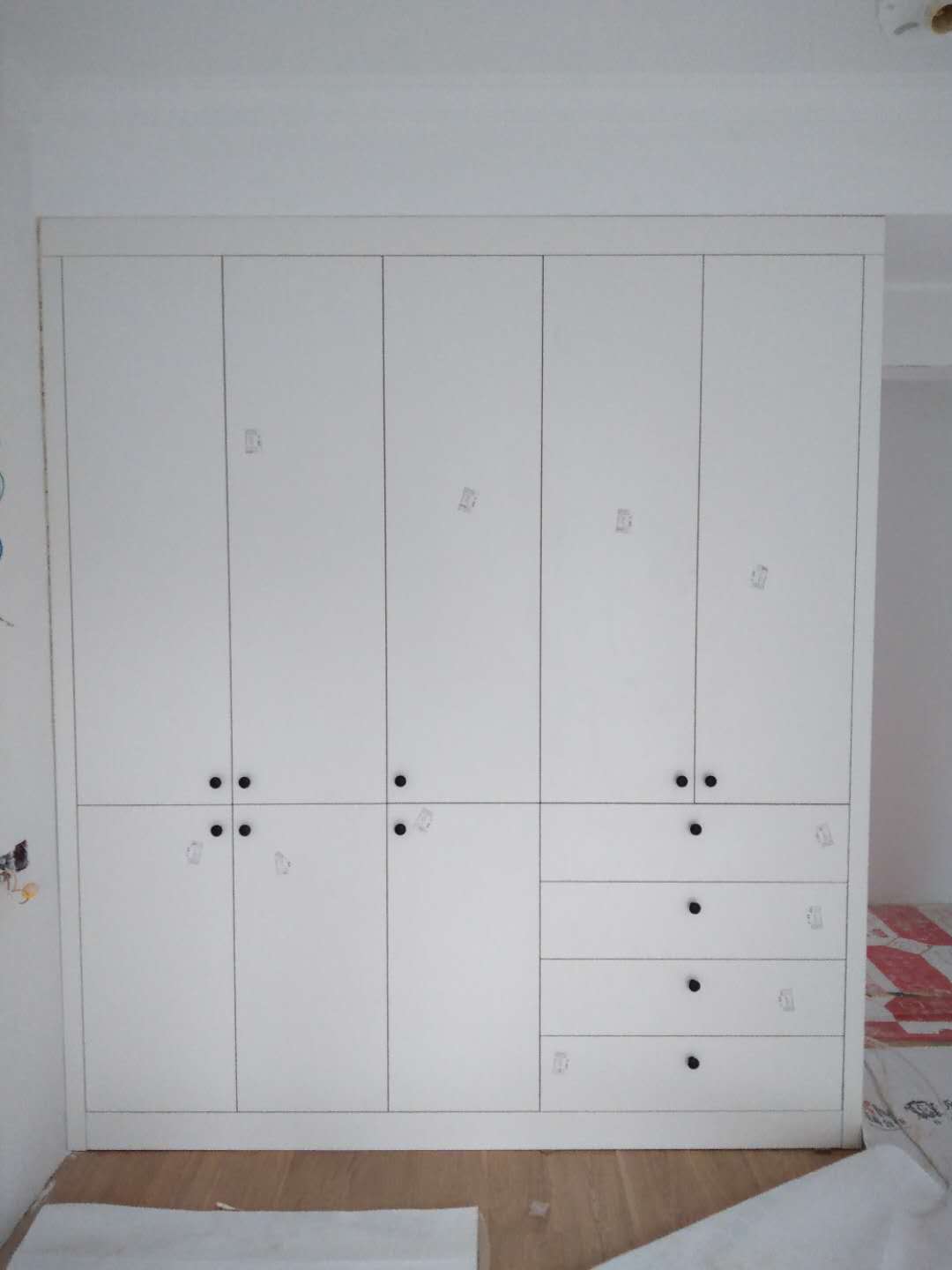 開始制作了,衣柜開板中,板材使用平安樹實(shí)木多層大富大貴制作,真材實(shí)料,有高級的藍(lán)光防偽標(biāo)識(shí)。