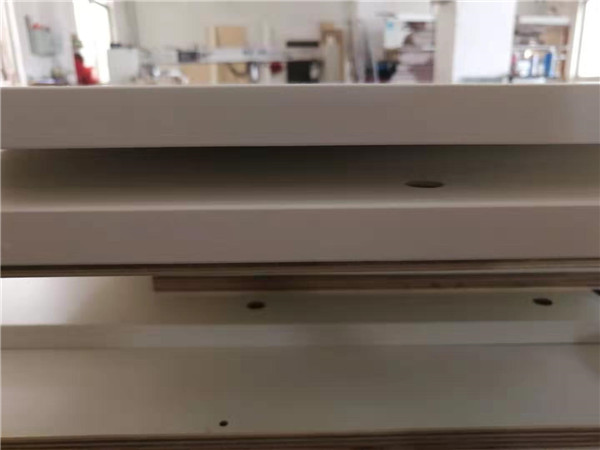 開始制作啦,專業(yè)設(shè)備裁板,沒有爆邊。柜體使用平安樹暖白、清水橡木實(shí)木多層板E0級制作,帶有高級的藍(lán)光防偽標(biāo)識,更安心