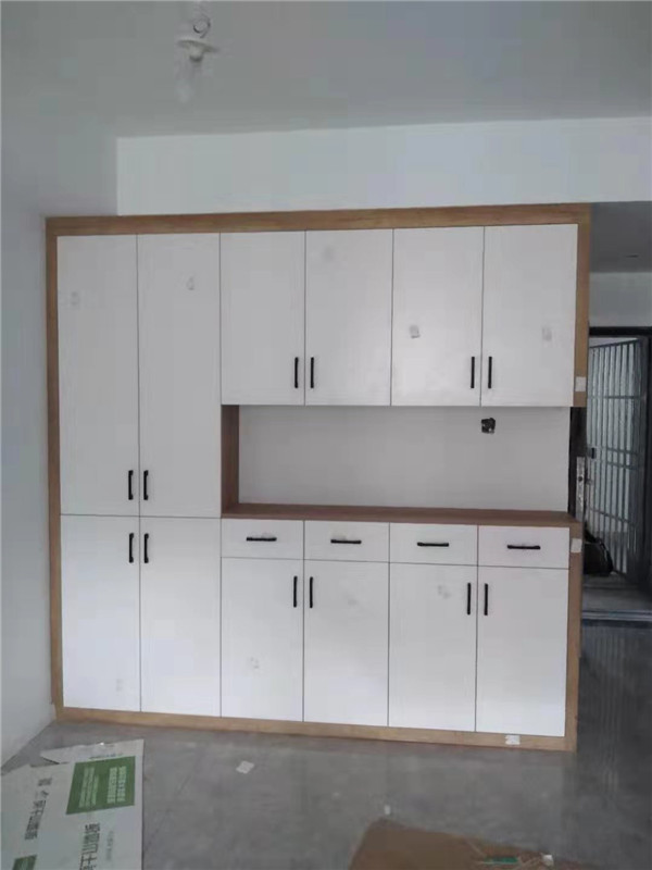 師傅們昨天的勞動成果,柜體已拼裝的差不多了,今天在安裝一天柜子的整體效果就出來了。