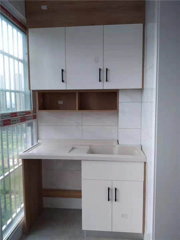 其他柜子柜體門板均采用實木多層板來做的,整體效果簡單大氣。陽臺柜臺面采用的是一體盆,上面有帶搓衣板的哦!洗洗小東西還是很方便的。
