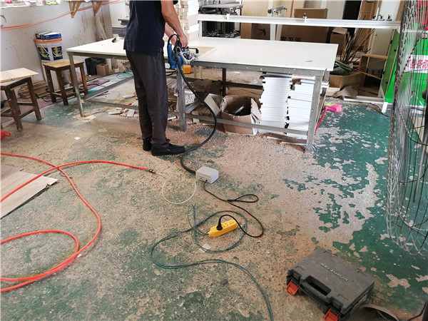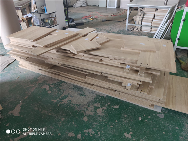 開始制作啦!柜體裁板中,專業(yè)設(shè)備裁板,沒有爆邊。板材使用平安樹實木多層板,