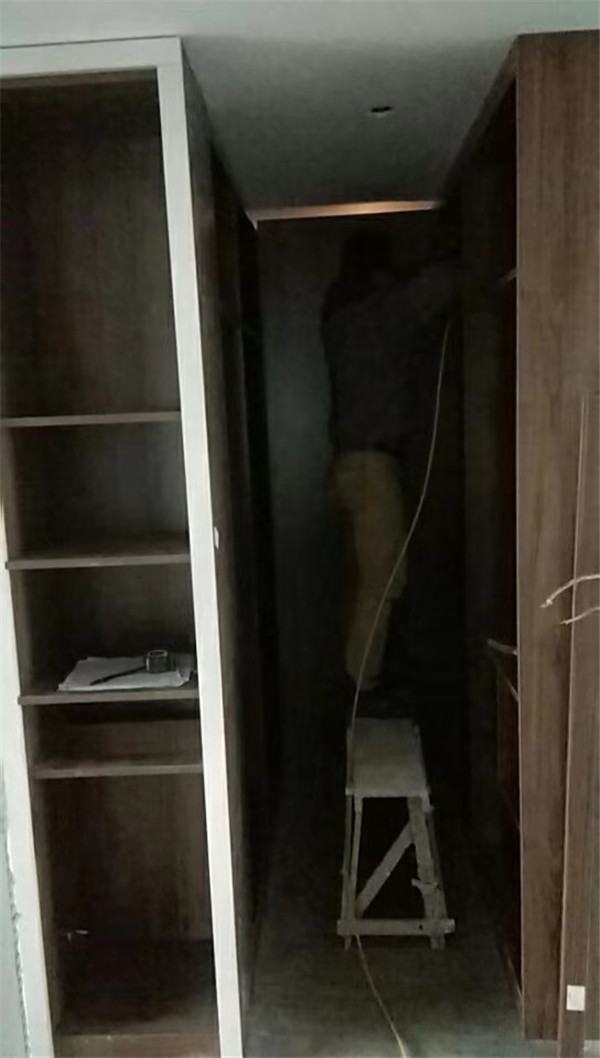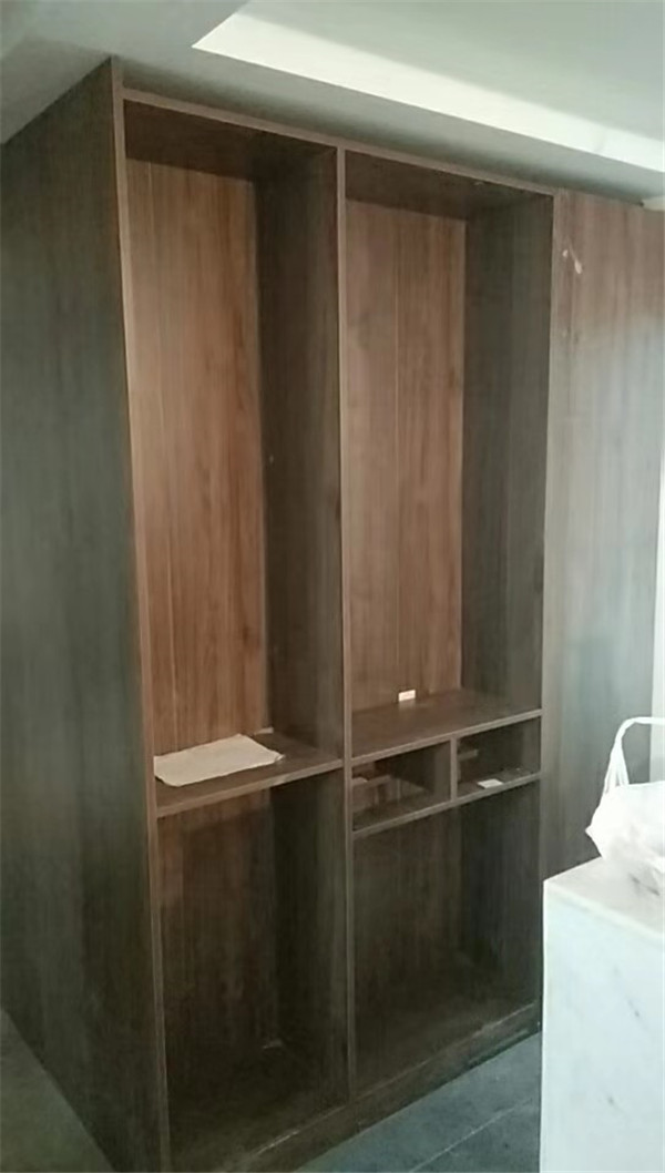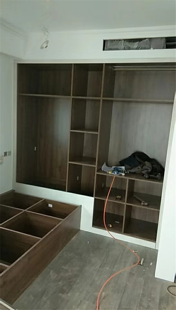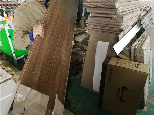 開始制作啦!柜體裁板中,板材使用平安樹實木多層板,大富大貴E0級制作,有高級的藍光防偽標識哦