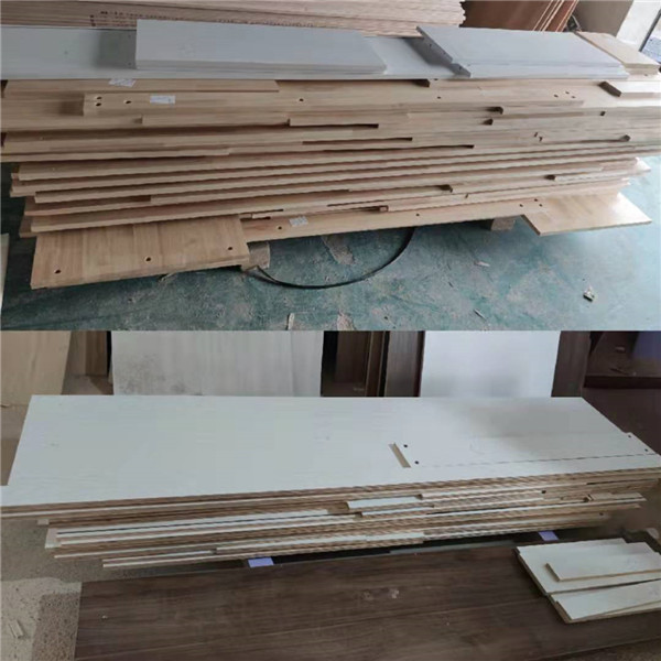 昨天部分橡膠木柜體拆板完畢,今天免漆板繼續(xù)