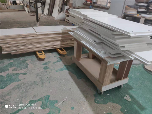 橡膠木柜體打包完畢,多層板柜體封邊中