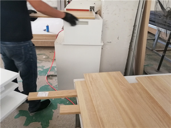 開始制作啦!柜體裁板中,專業(yè)設(shè)備裁板,沒有爆邊,線條筆直,鞋柜板材使用平安樹實(shí)木多層板,