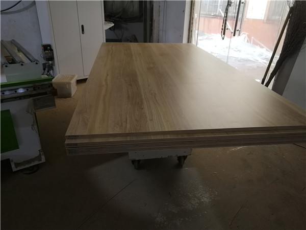 開始制作啦!柜體裁板中,板材使用平安樹實(shí)木多層板,清水橡木E0級制作,有高級的藍(lán)光防偽標(biāo)識哦