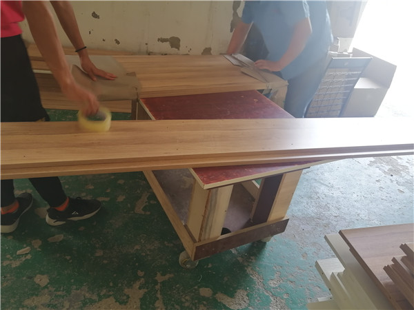 開(kāi)始封邊啦!封邊采用法國(guó)波士熱熔顆粒膠,設(shè)備溫度達(dá)到200°C封出來(lái)的邊牢固,沒(méi)有爆邊,完美無(wú)瑕。板材有點(diǎn)多,每一塊都需要師傅們認(rèn)真對(duì)待,給師傅們加油點(diǎn)贊!