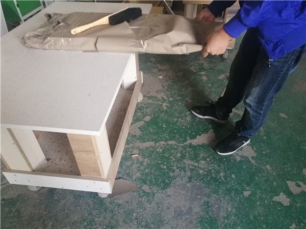 開(kāi)始制作啦,柜體裁板中,板材使用平安樹(shù)實(shí)木多層霧麻暖白E0級(jí)制作,有高級(jí)的藍(lán)光防偽標(biāo)識(shí)哦
