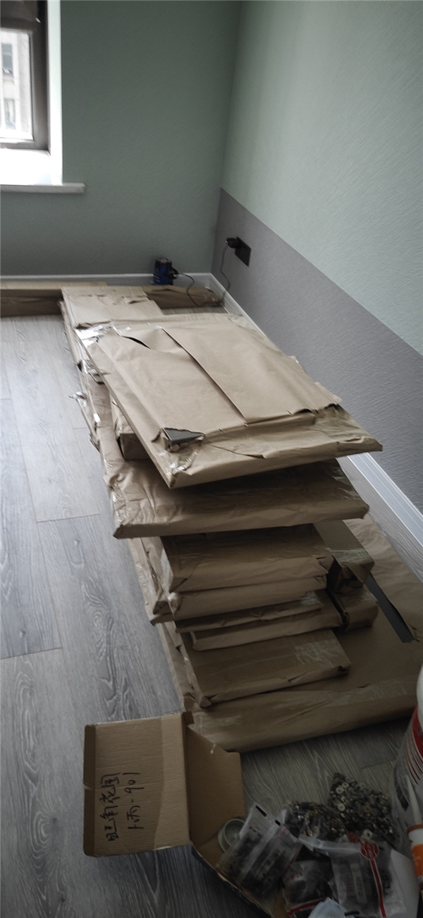 柜體拼裝完畢,再有一天柜門(mén)也能全部完成了,等待最后的成果