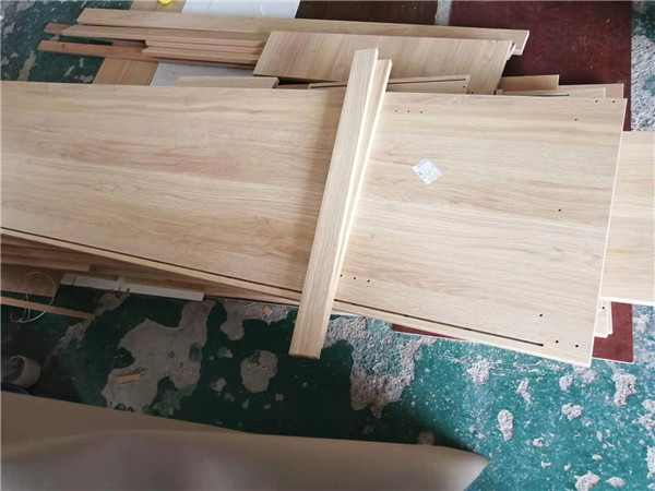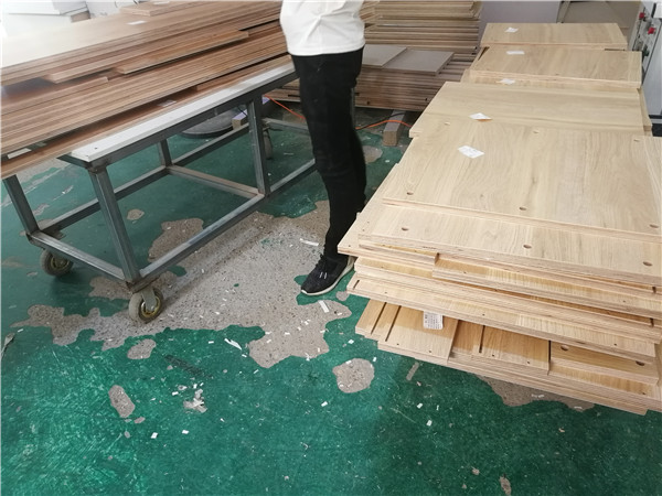 開始制作啦!柜體裁板中,板材使用平安樹實(shí)木多層板,清水橡木E0級制作,有高級的藍(lán)光防偽標(biāo)識哦。