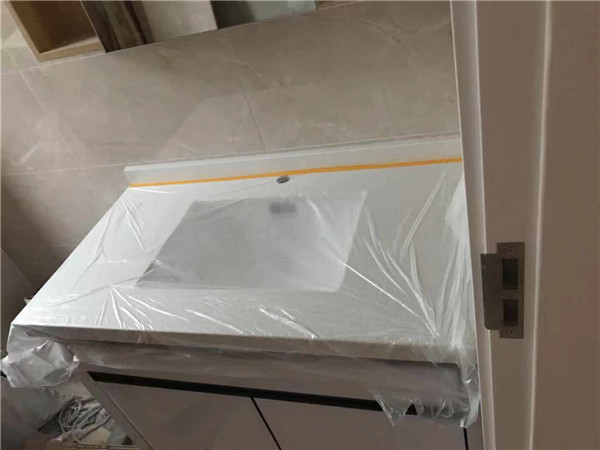 臺(tái)面安裝完畢,還有一小塊臺(tái)面師傅再處理一下就安裝好