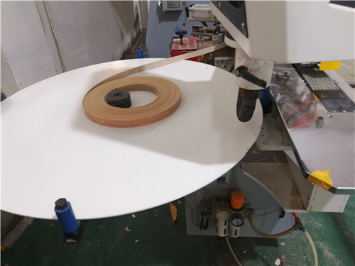 開始封邊啦,封邊采用法國波士熱熔顆粒膠,設備溫度達到200°C封出來的邊牢固,沒有爆邊,