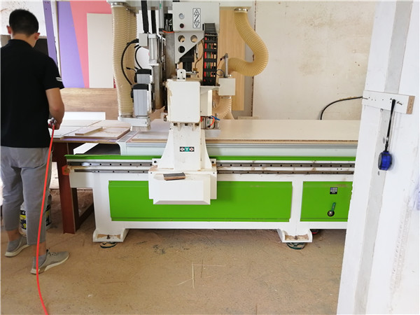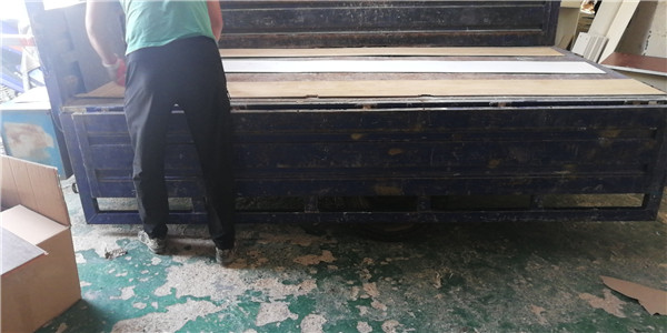 裁板進(jìn)行中,板材使用平安樹仿古布紋、暖白實(shí)木多層板E0級(jí)制作,帶有高級(jí)的藍(lán)光防偽標(biāo)識(shí),更安心!