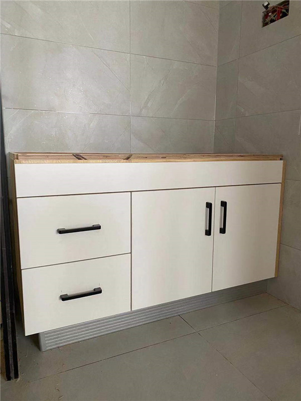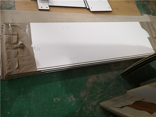 開始制作啦!柜體裁板中,板材使用平安樹實木多層板,霧麻暖白E0級制作,有高級的藍光防偽標識哦