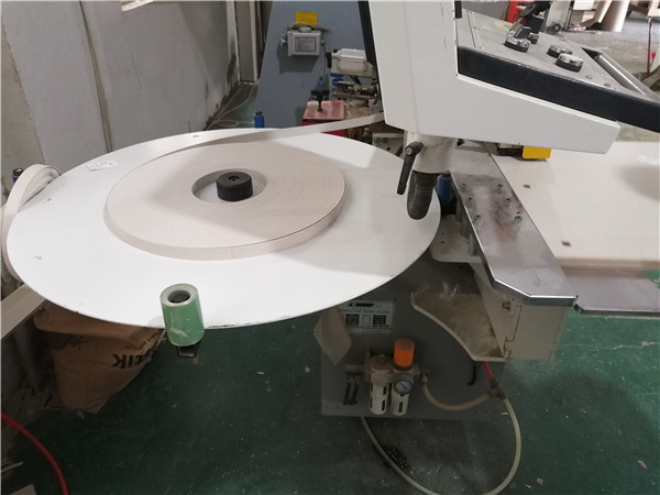 開始封邊啦,封邊采用法國(guó)波士熱熔顆粒膠,設(shè)備溫度達(dá)到200°C封出來的邊牢固,沒有爆邊,完美無(wú)瑕。