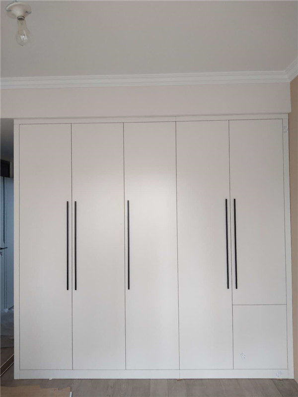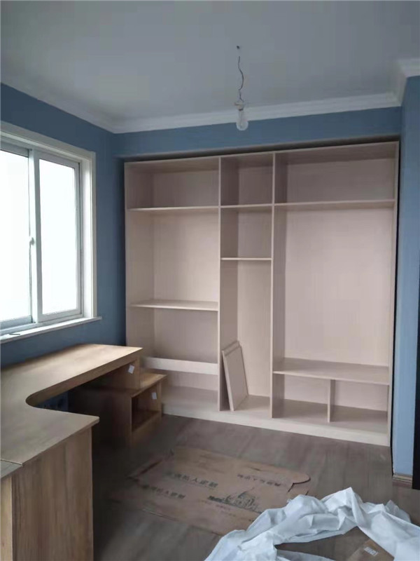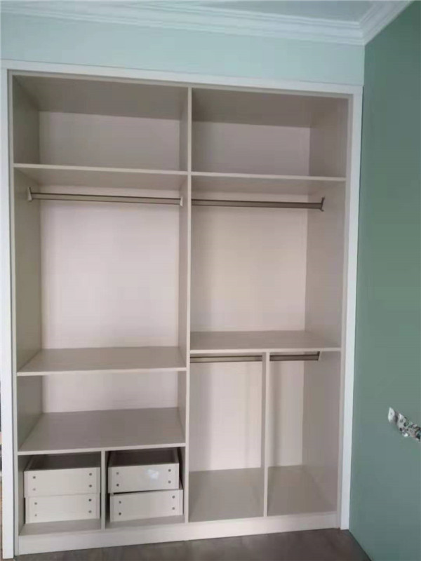 柜體拼裝完畢,大體模樣已經(jīng)出來了,再有一天把柜門裝上就差不多結(jié)束啦,好看的柜子少不了搭配高品質(zhì)的五金:海蒂詩(shī)導(dǎo)軌,諾米鉸鏈,反彈器,ABS尼龍柜腳,索菲亞掛衣架等