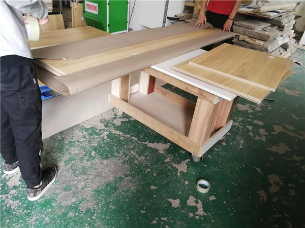 師傅加班已經(jīng)把封邊結(jié)束了,封邊采用法國(guó)波士熱熔顆粒膠,設(shè)備溫度達(dá)到200°C封出來(lái)的邊牢固,沒(méi)有爆邊,完美無(wú)瑕。每塊板上都貼有小標(biāo)簽,方便后期安裝師傅安裝。