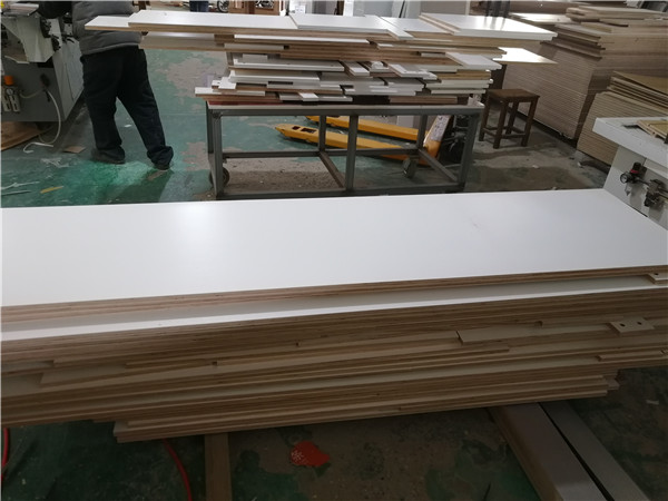 開始制作啦!柜體裁板中,板材使用平安樹實木多層板E0級制作,有高級的藍光防偽標識哦