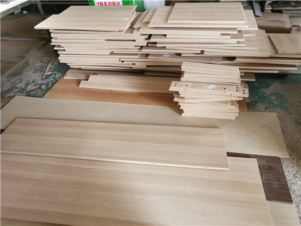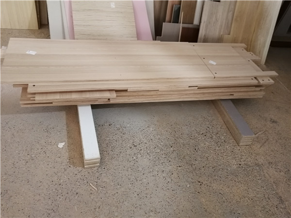 開始制作啦!柜體裁板中,板材使用平安樹實木多層板上品橡木E0級制作,有高級的藍光防偽標識哦