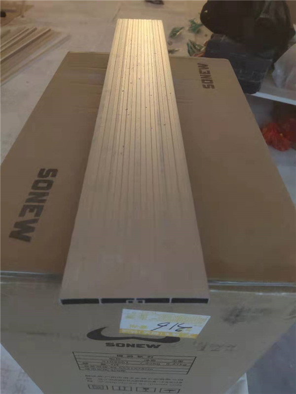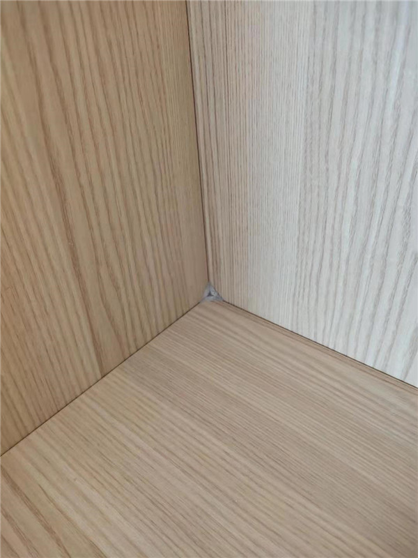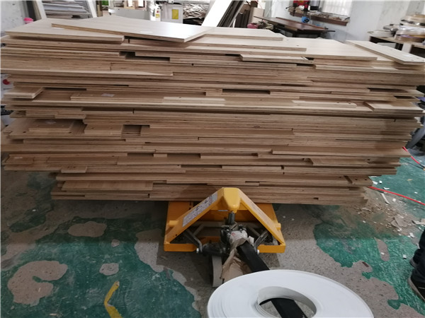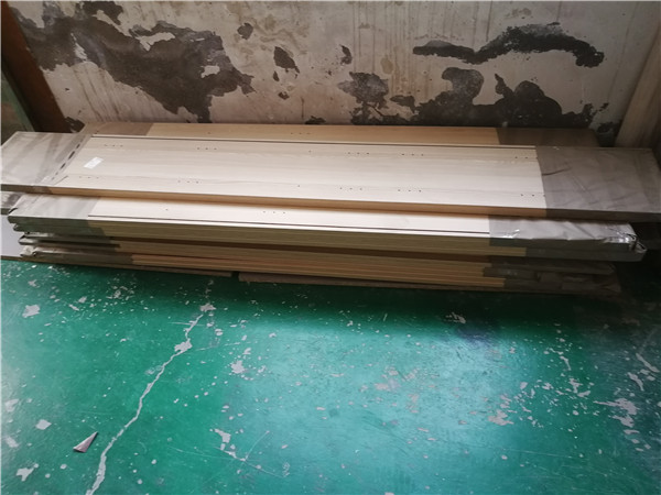 開始封邊啦,封邊采用法國波士熱熔顆粒膠,設(shè)備溫度達到200°C封出來的邊牢固,沒有爆邊,完美無瑕。每塊板上都貼有小標簽,方便后期安裝師傅安裝