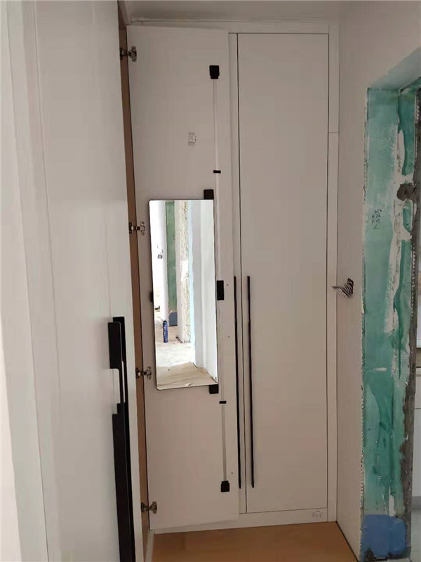 柜子整體安裝結(jié)束,白色柜門看著不錯,簡單大氣。玻璃門也比較亮點的呢。