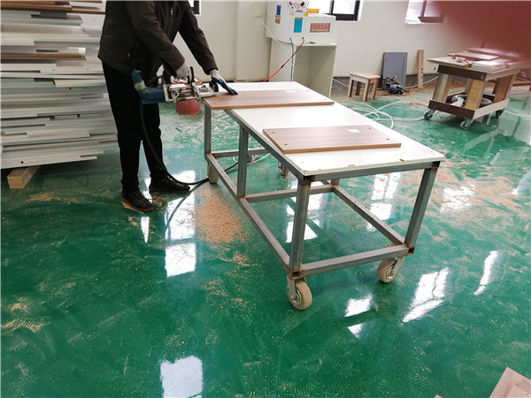 開始封邊啦,封邊采用法國(guó)波士熱熔顆粒膠,設(shè)備溫度達(dá)到200°C封出來的邊牢固,沒有爆邊,完美無瑕。