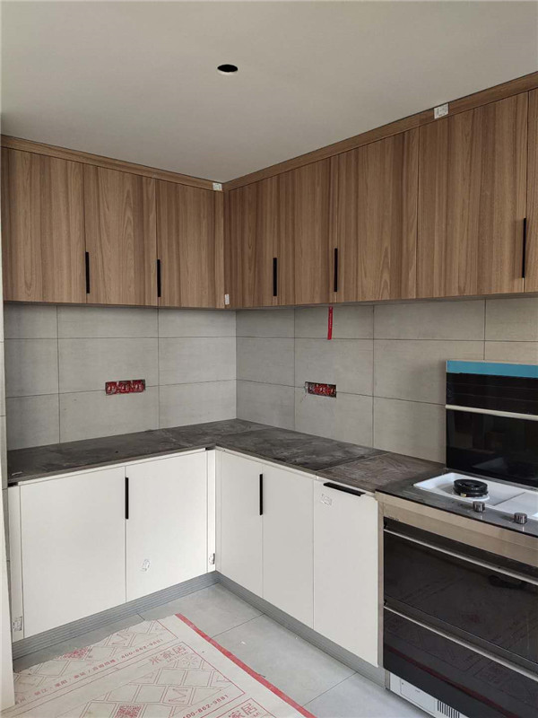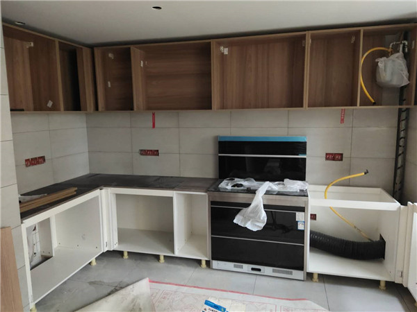 柜體基本安裝結(jié)束啦!櫥柜柜體上下柜跳色,蠻有特色的,嘻嘻