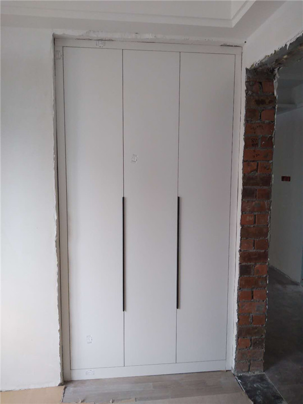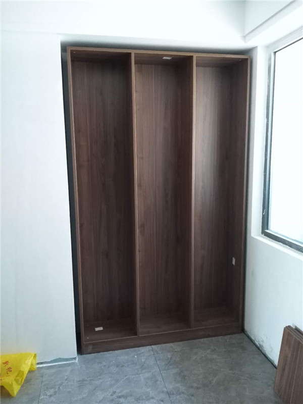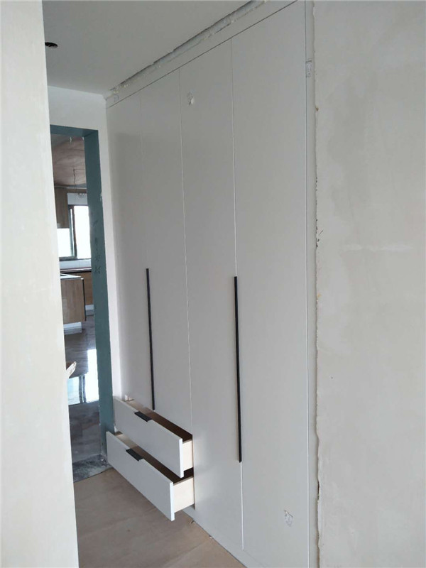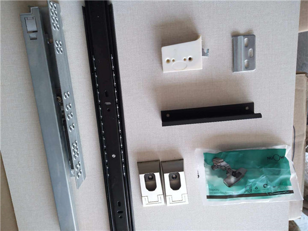 柜體基本安裝完畢,柜體的安裝少不了五金的搭配,諾米鉸鏈,導軌,索菲亞掛衣架等