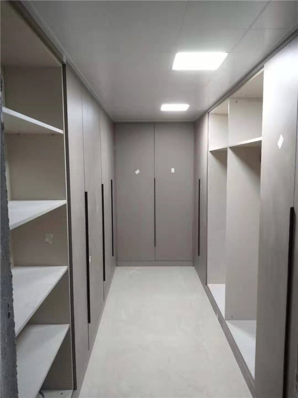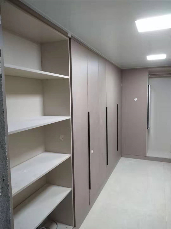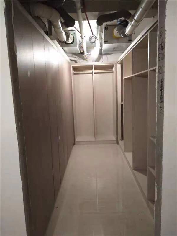 安裝結(jié)束,來(lái)看下這大大的衣帽間,以后就不是少一件衣服了,而是少一個(gè)衣柜的衣服了,哈哈哈,可以買起來(lái)了。衛(wèi)浴柜也很好看吶,鑲銅條顏值很高??!
