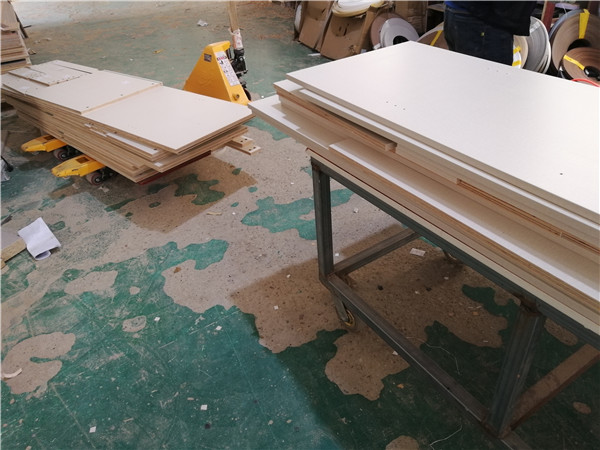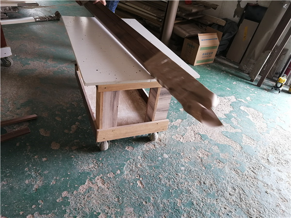 開始制作啦!柜體裁板中,板材使用平安樹實(shí)木多層板,皮紋E0級(jí)制作,有高級(jí)的藍(lán)光防偽標(biāo)識(shí)哦